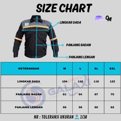 WEARPACK ATASAN LENGAN PANJANG BAJU KERJA WARNA HITAM KOMBINASI ABU - HITAM ABU, M
