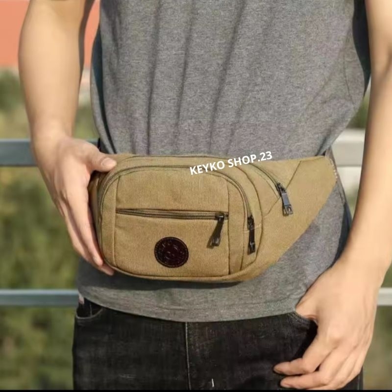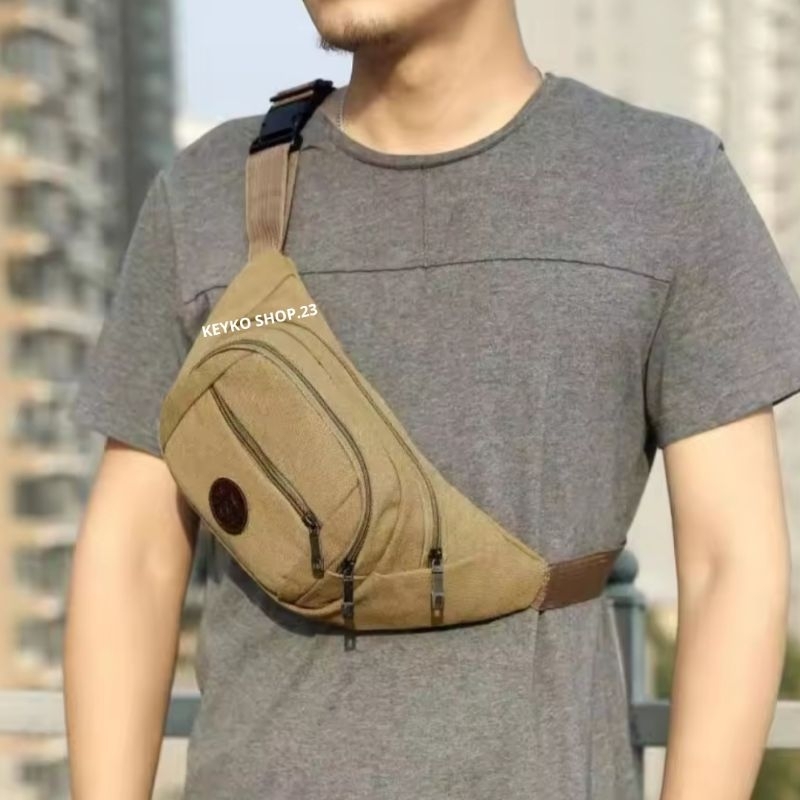 Tas Selempang Canvas Pria Waistbag Fashion Clasic Cowok Import Premium