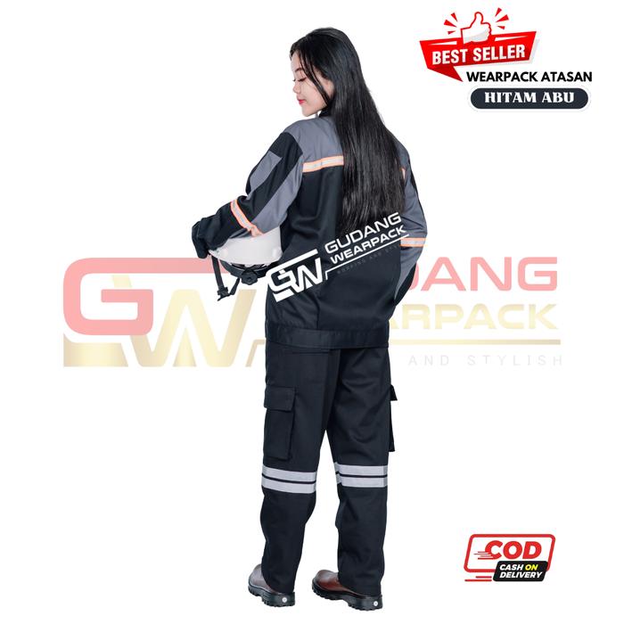 WEARPACK ATASAN KERJA LENGAN PANJANG WARNA HITAM KOMBINASI ABU BAHAN AMERICAN DRILL ZIPER RESLETING - HITAM ABU, M