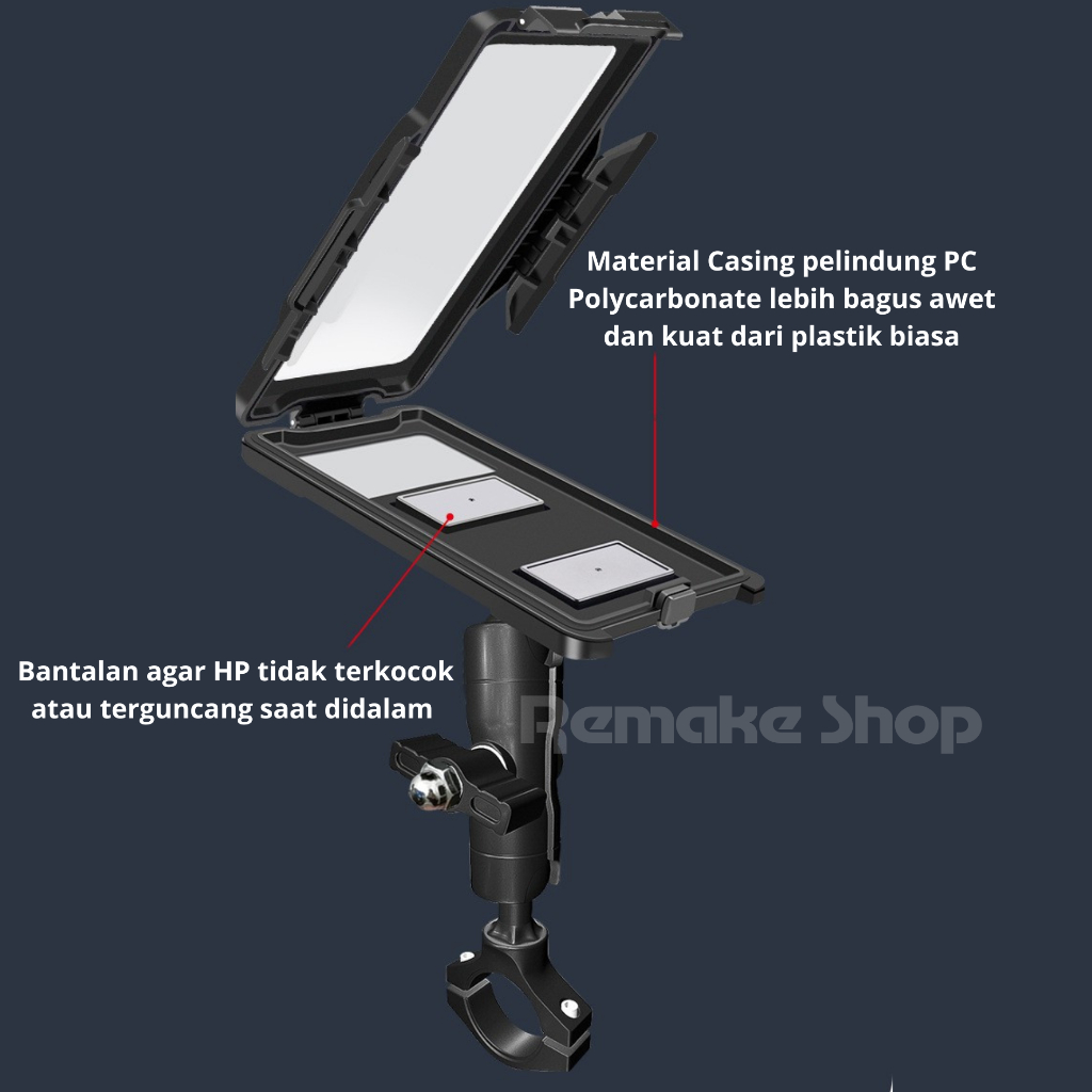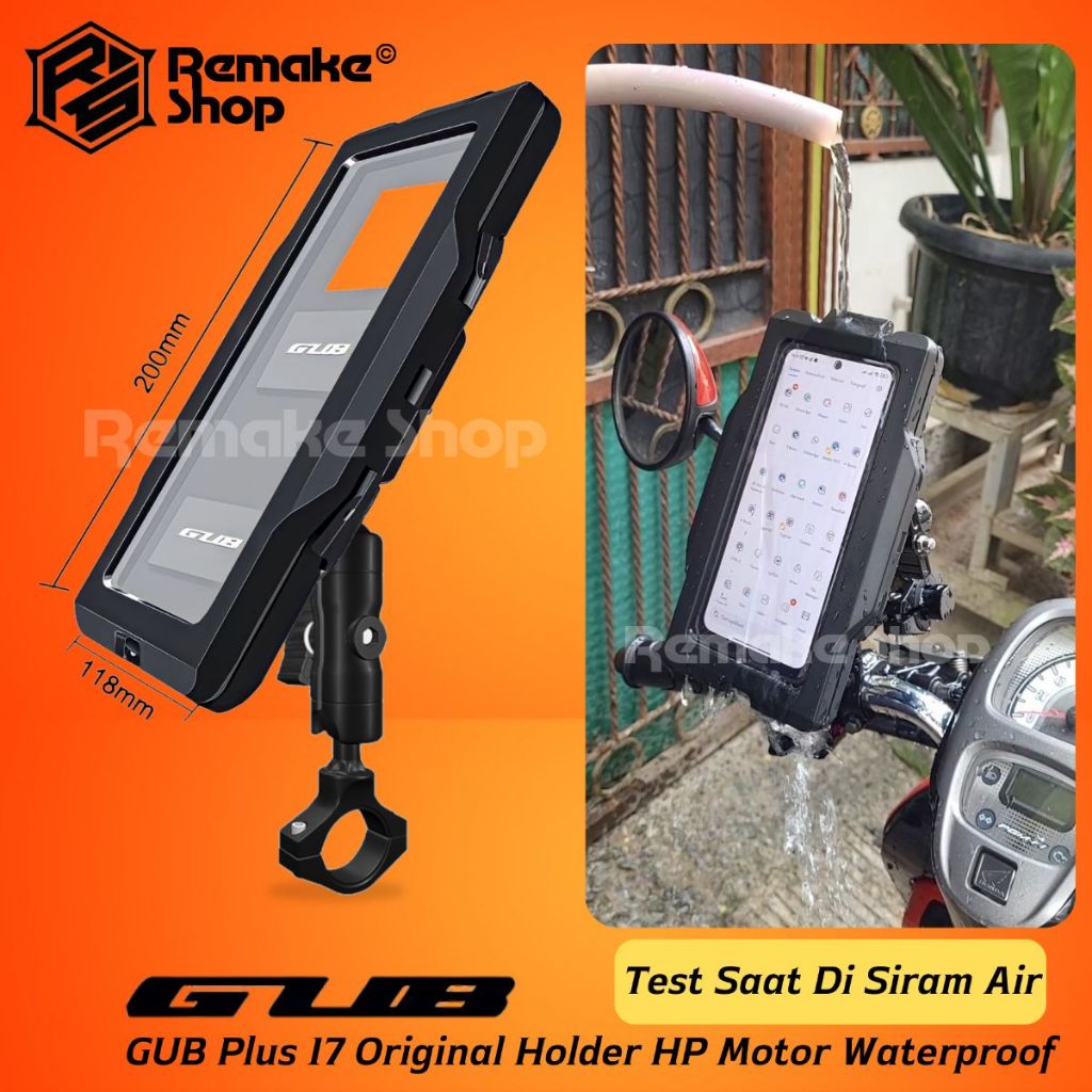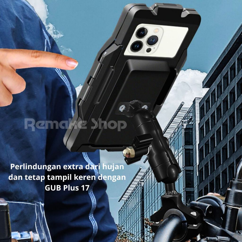 Gub Plus 17 Original Alumunium Alloy Holder Hp Motor Waterproof Full Besi Anti Getar Tahan Air Stang Spion Rotasi 360 De