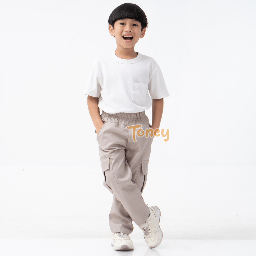 Celana Cargo Panjang Anak Laki-Laki Perempuan 1 13Tahun Katun Drill Toney