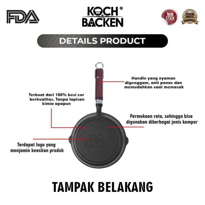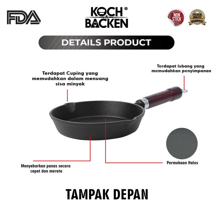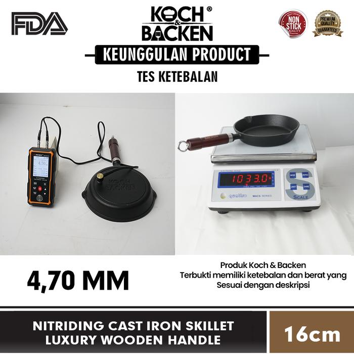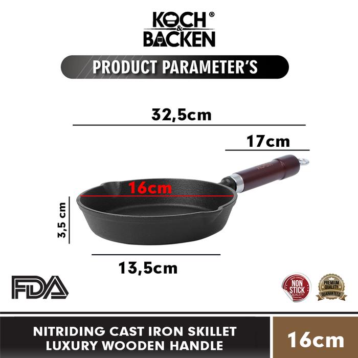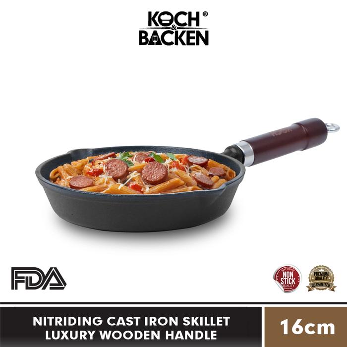 KOCH&BACKEN Preseasoned Nitriding Cast Iron Skillet Luxury Wooden Handle 16cm