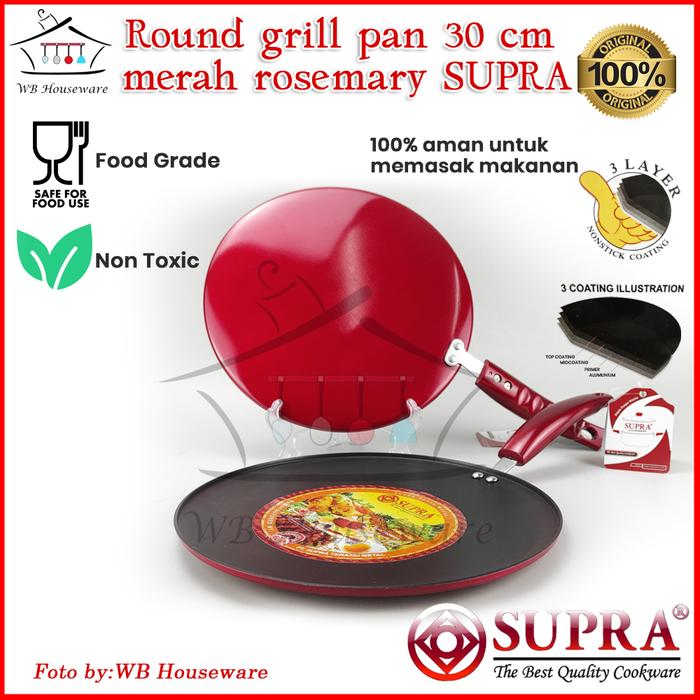 Wajan Teflon / Wajan Ceper / Wajan Gagang / SUPRA ROUND GRILL PAN 30CM - GrillPan Bulat Ceper - handle merah