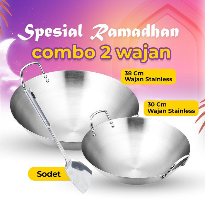 2PCS WAJAN STAINLESS STEEL TEBAL 30CM +38CM FREE SPATULA