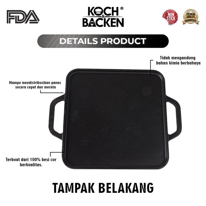KOCH&BACKEN Nitriding Pre-seasoned Cast Iron Grill 24cm - Wajan Panggangan Besi Cor Anti Lengket