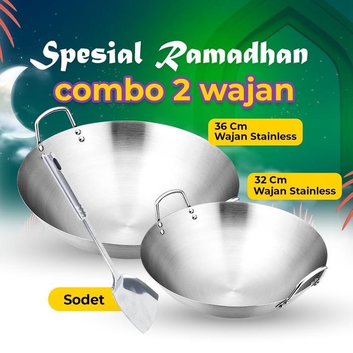 PILIHAN EMAK-2PCS WAJAN STAINLESS STEEL TEBAL 32CM +36CM FREE SPATULA