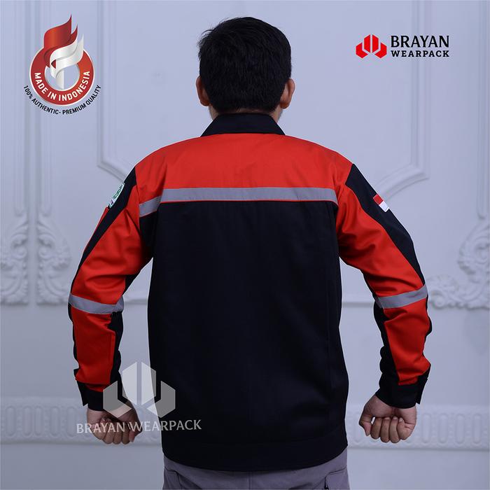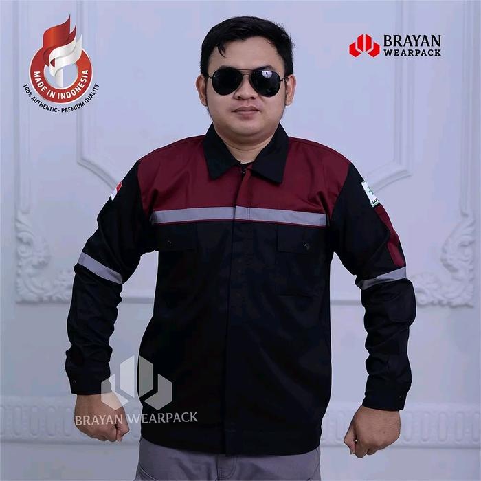 BAJU SAFETY WEARPACK KERJA SERAGAM PROYEK PDL LENGAN PANJANG HITAM MAROON - HITAM LOS, M