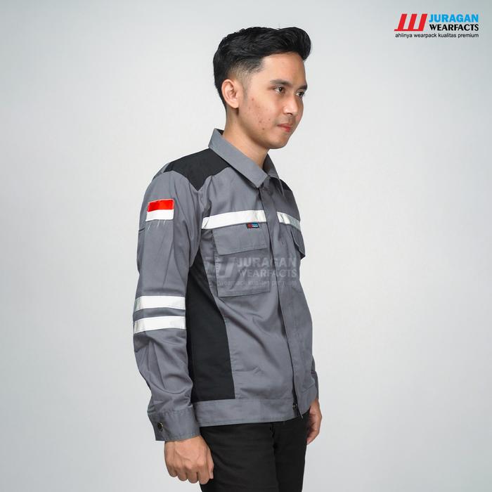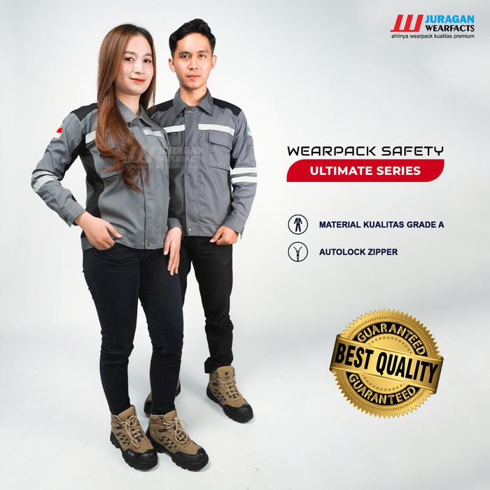 WEARPACK SAFETY BAJU ATASAN SERAGAM LAPANGAN K3 SAFETY PROYEK PRIA WANITA MODEL ULTIMATE WARNA ABU KOMBINASI HITAM PANJANG SERAGAM KERJA KATUN - S