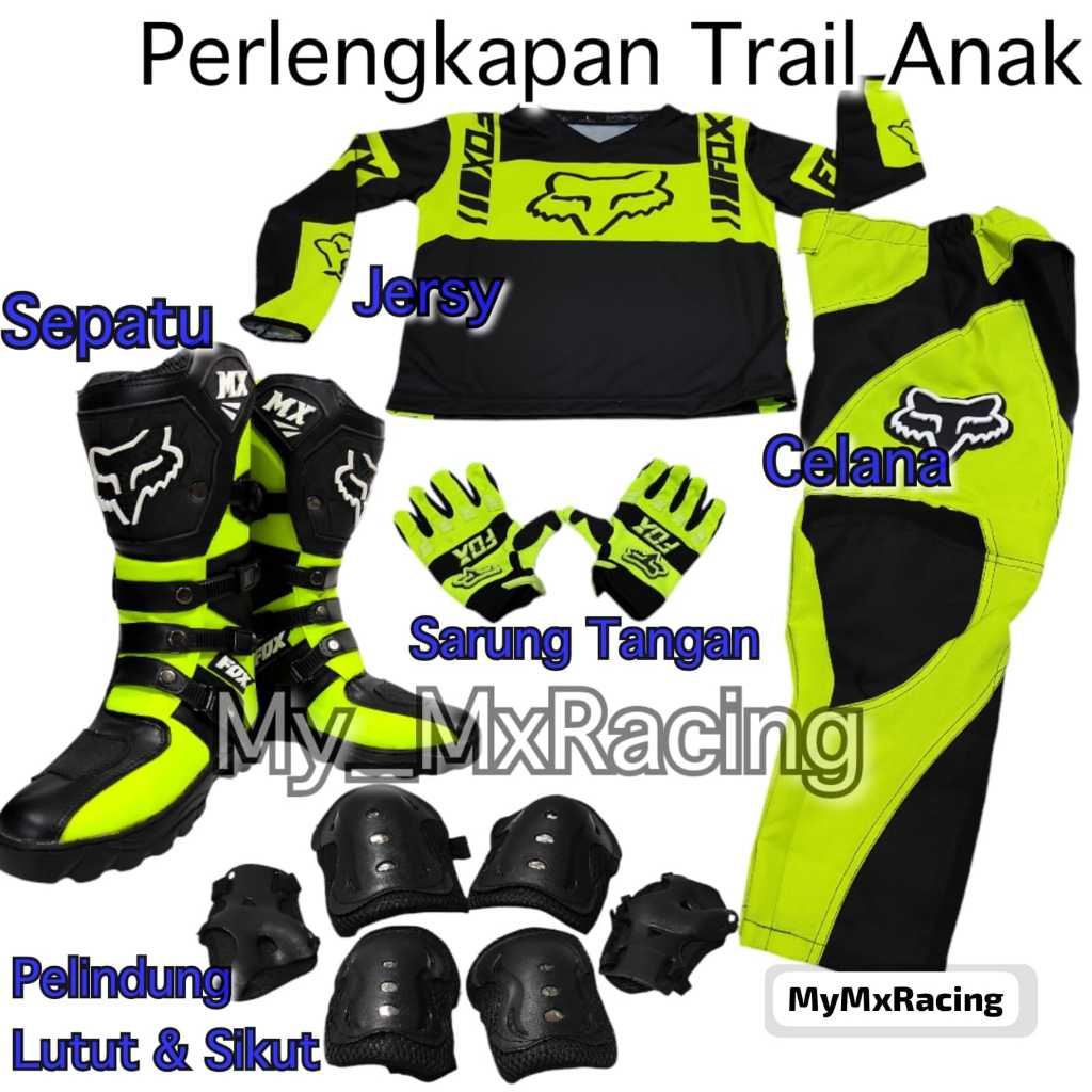 Promo Termurah Satu Sett buat anak Sepatu Cross Jerset BISA PAKAI NAMA & NOMOR Trail Glove buat Anak setelan offroad buat anak