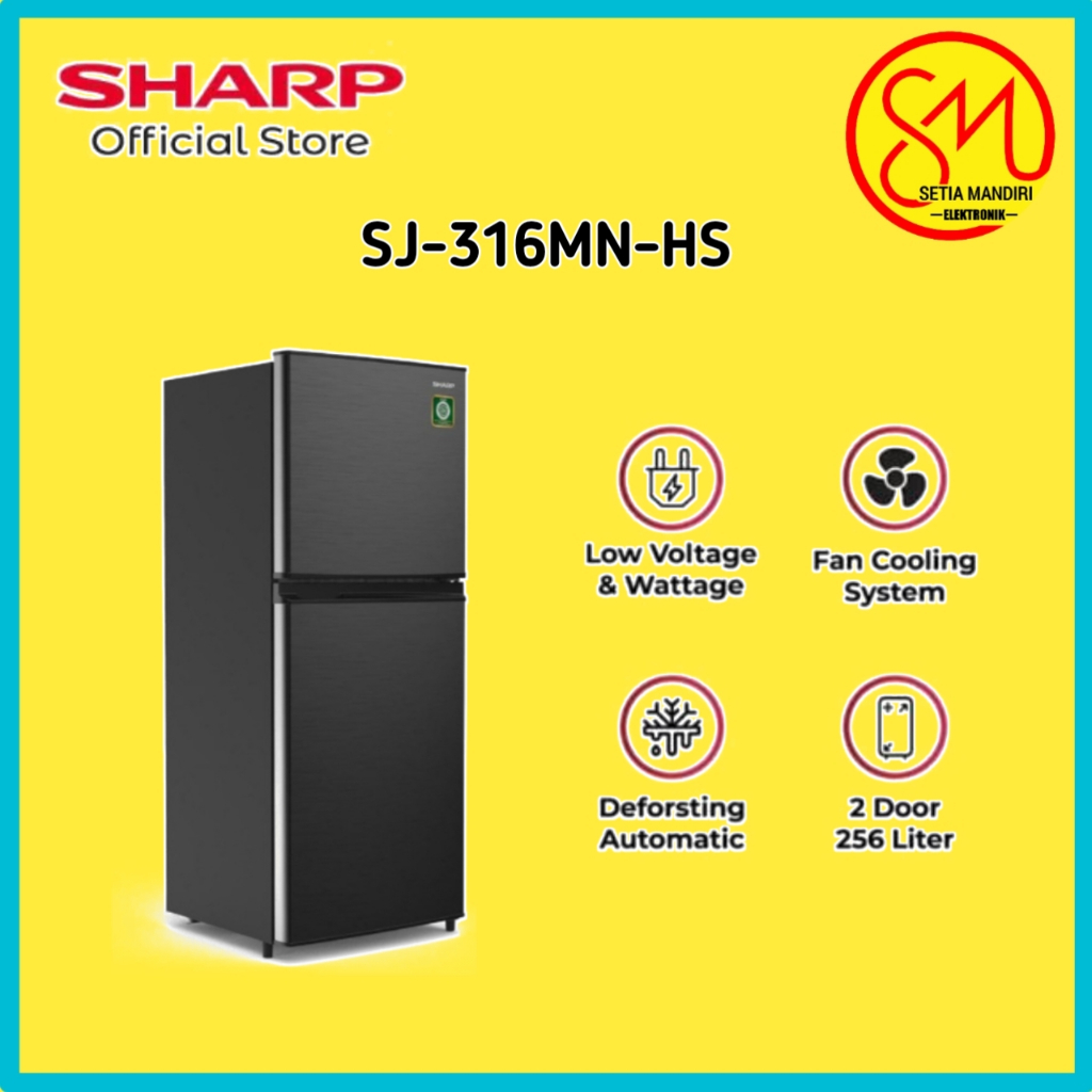 Sharp Kulkas 2 Pintu Kirei Series SJ-316MN-HS | SJ316MNHS 256/237 Liter Tempered Glass Mega Crisper