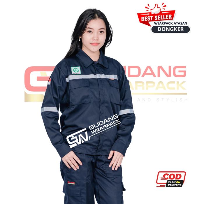 WEARPACK ATASAN KERJA LENGAN PANJANG WARNA BIRU DONGKER LOS NAVY BAHAN AMERICAN DRILL - DONGKER LOS, M