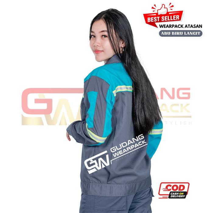 WEARPACK ATASAN LENGAN PANJANG WARNA ABU KOMBINASI BIRU LANGIT BAHAN AMERICAN DRILL ZIPER RESLETING - ABU BIRU LANGIT, M