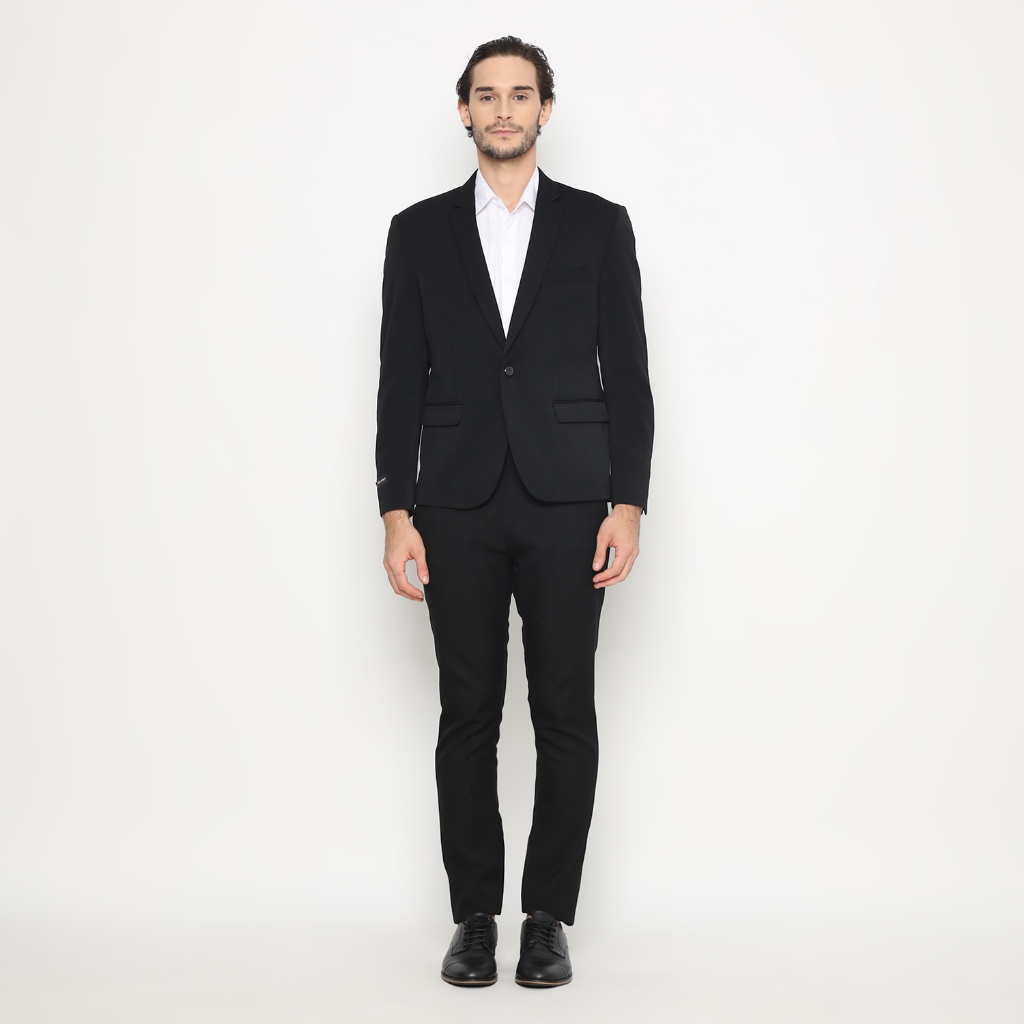 SETELAN PRIA JAS KANCING 1&2 DAN CELANA FORMAL SLIMFIT®ULER HITAM (20)