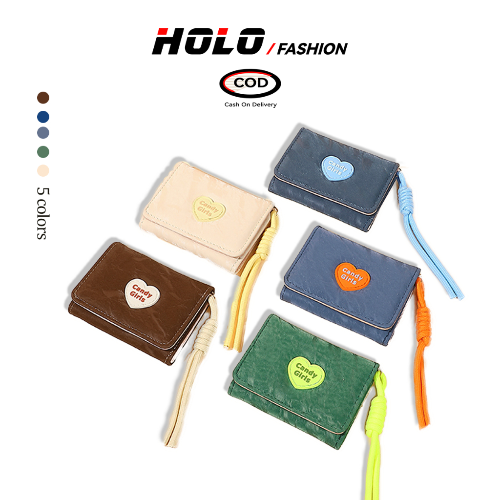 Dompet Lipat Dompet Mini Holo Wanita Korea Import Lucu Card Holder Aesthetic Dompet Kartu Dan Uang