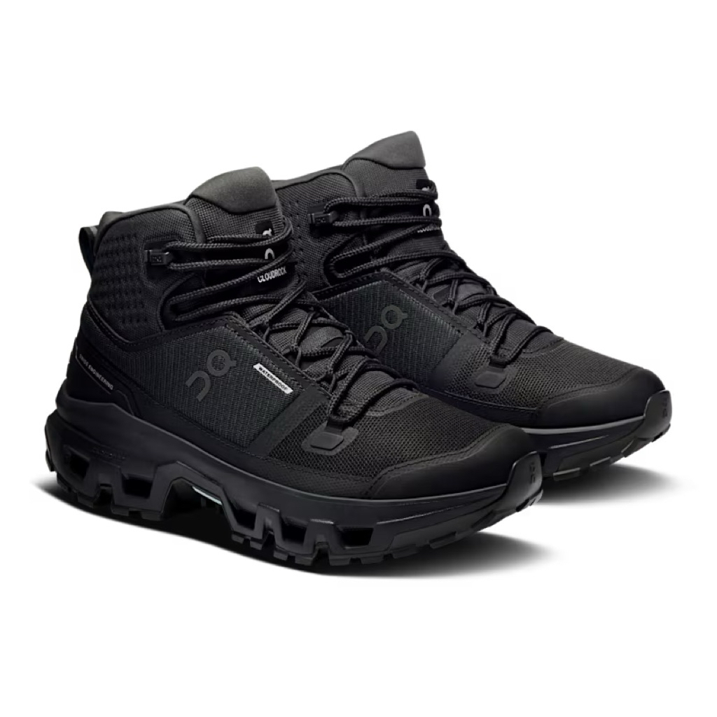 SEPATU HIKKING ON CLOUDROCK MID WATERPROOP ALL BLACK SHOES HIKKING