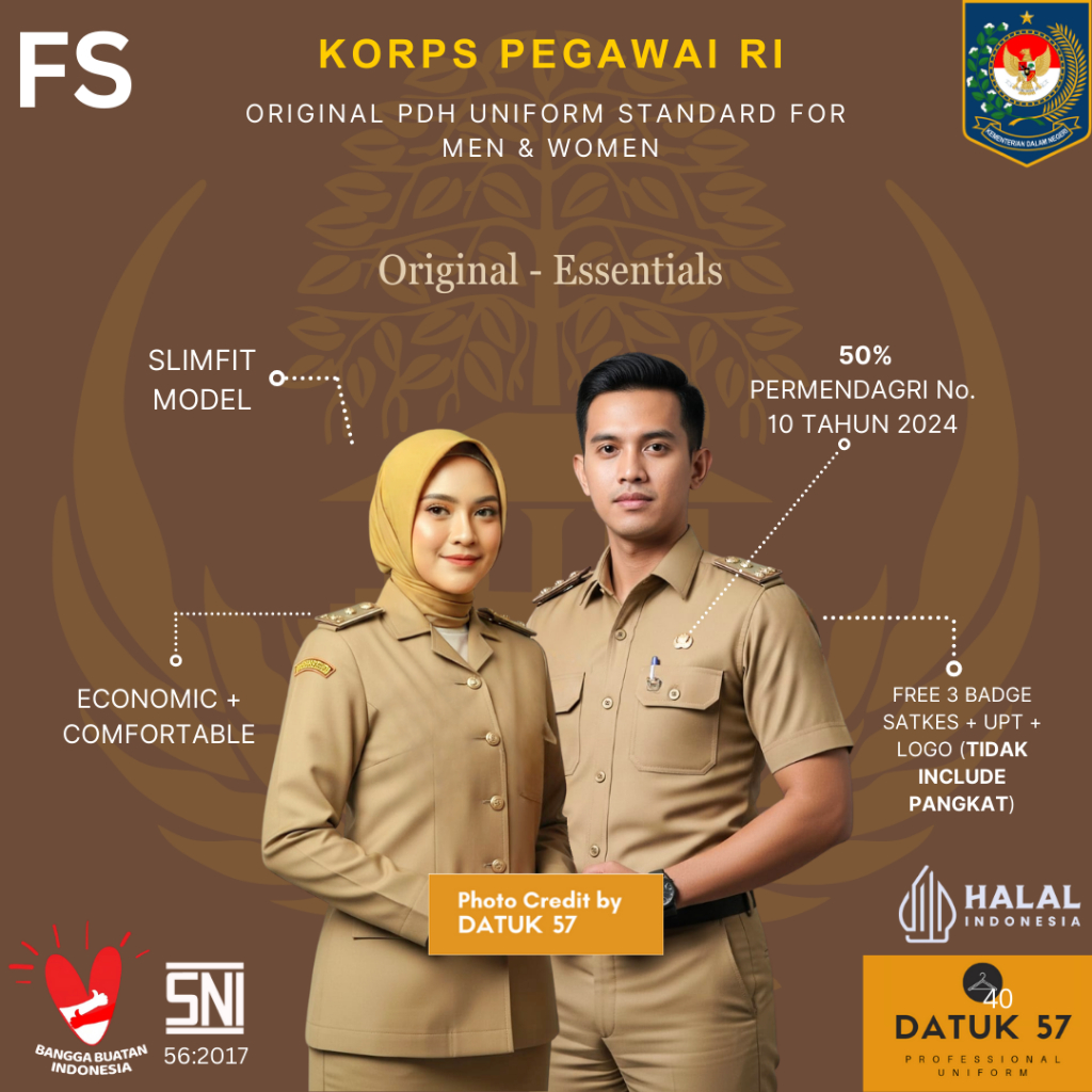 [FULL SET] Original Essentials by Datuk57 : Seragam Setelan Stel PDH Khaki Pemda PPPK PNS ASN Guru Pegawai Negeri Sipil