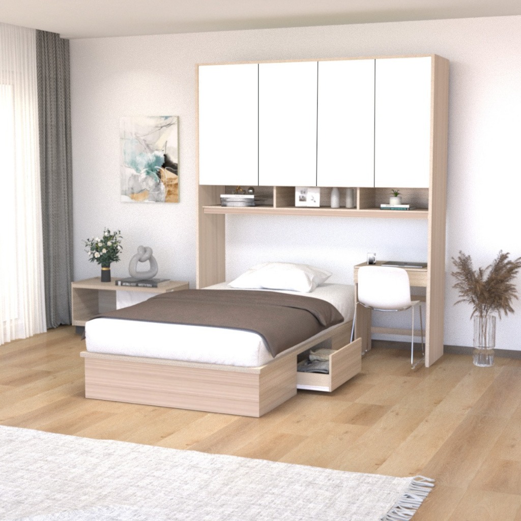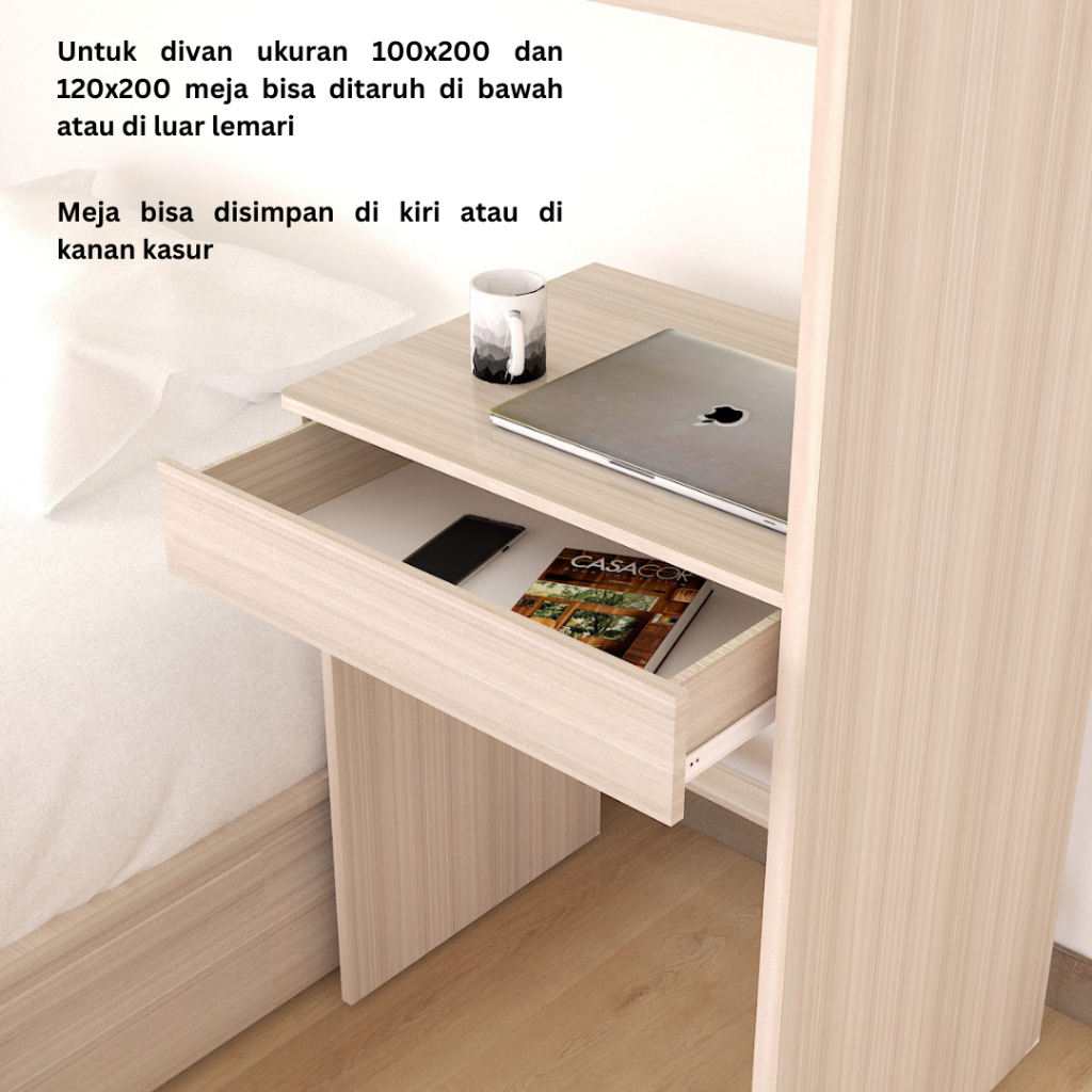 KIRANA Clay - Ranjang Set Divan Kayu Lemari Pakaian Putih Rak Pajangan Meja Belajar Modern Minimalis