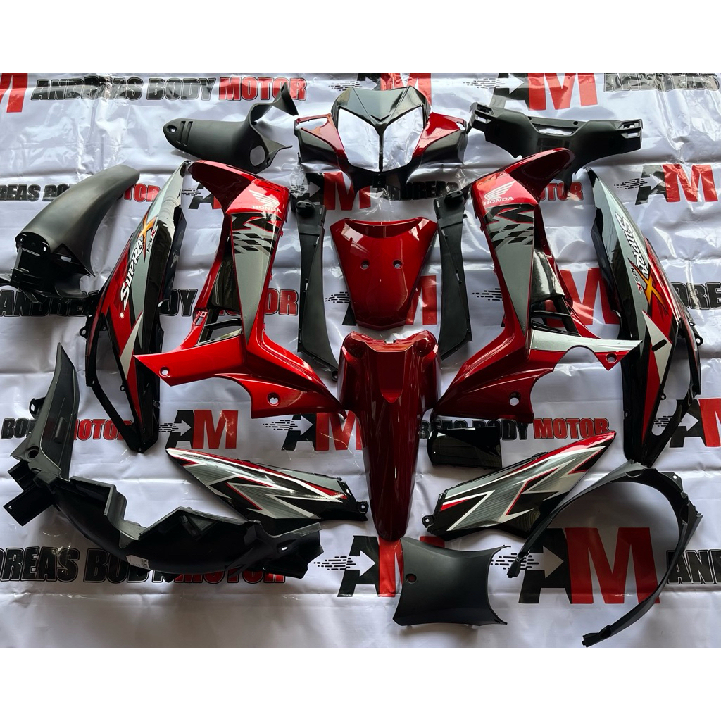 Full set cover body halus dan kasar Motor Supra x 125 Batman 2008-2014 karburator Merah & Hitam