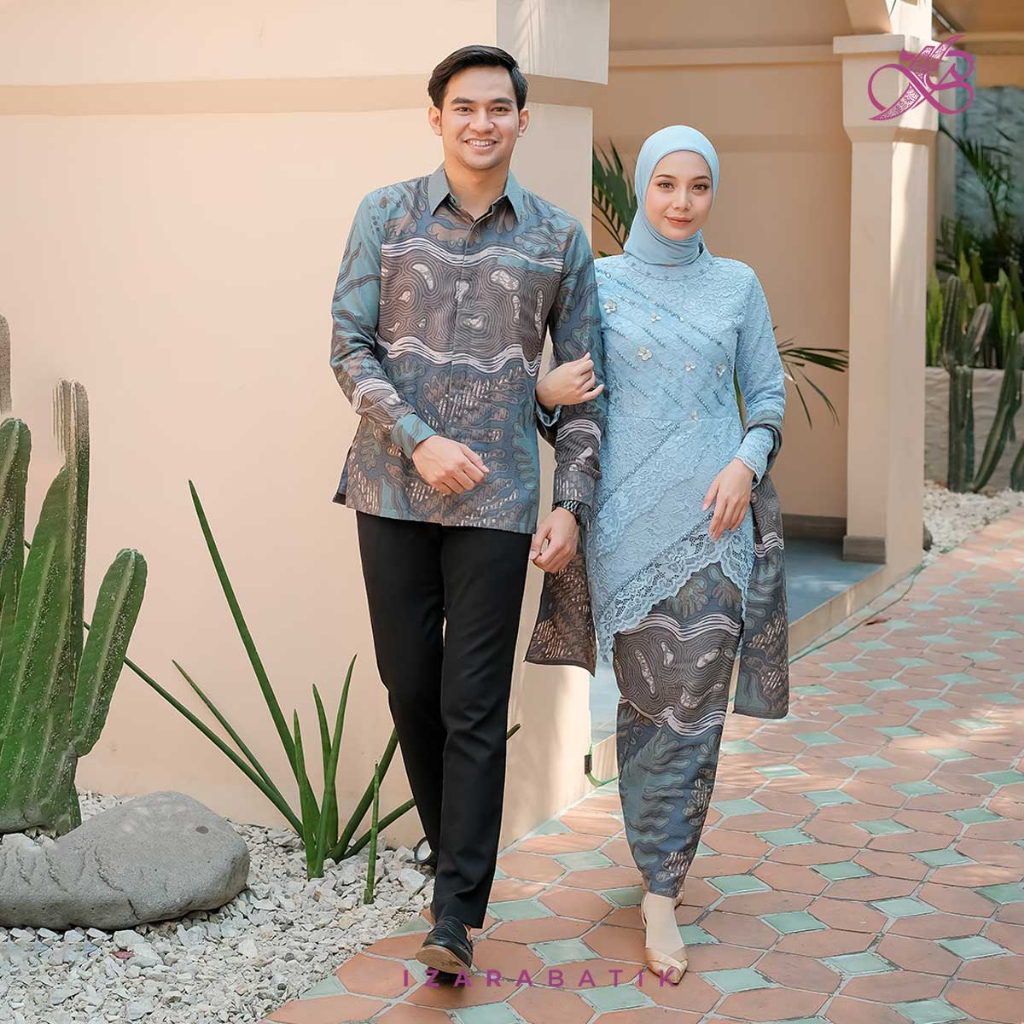 FLASH SALE BlueSet Kebaya Batik Modern Couple Wisuda Lamaran Full Payet Tunangan Kondangan Bridesmaid