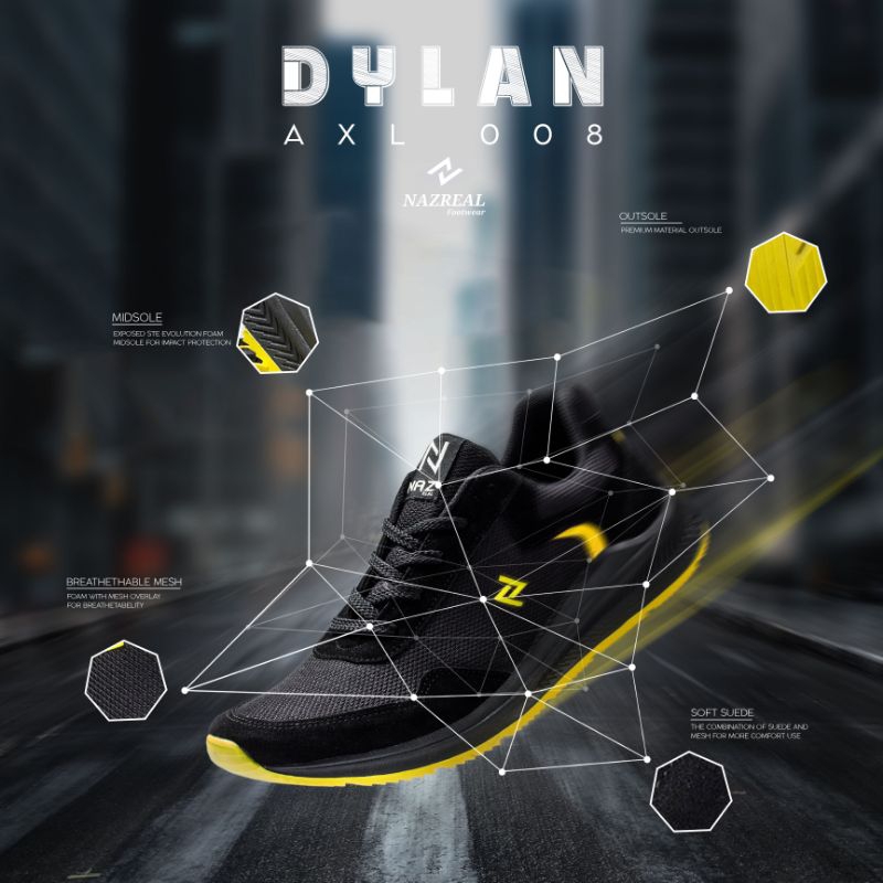Nazreal Footwear - Sneakers Pria Sepatu Sport Dylan Black Yellow
