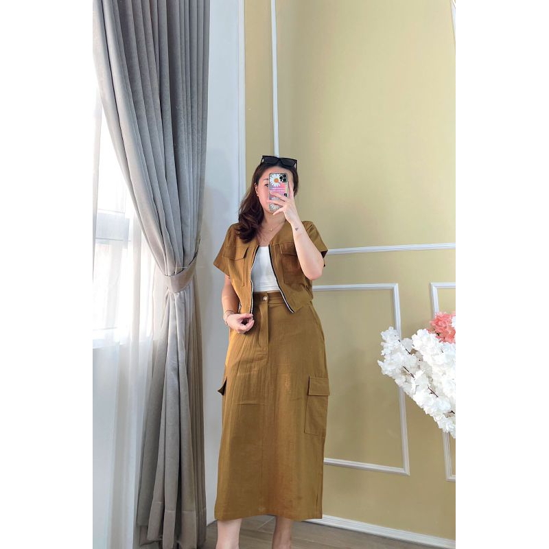 GC 2248 Bernice Zipper go Midi Skirt Katun Linen