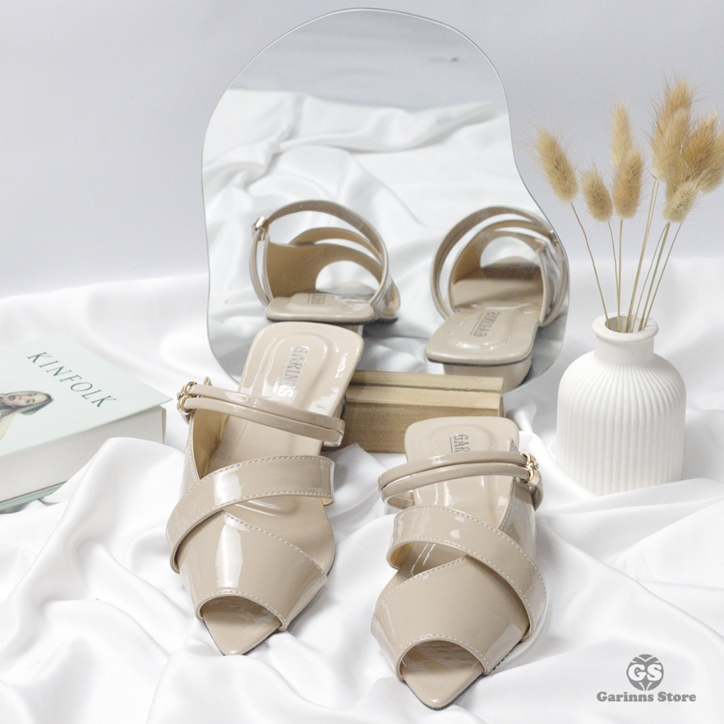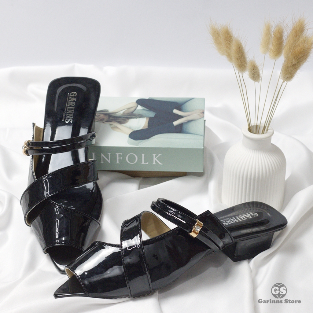 Sandal Sepatu Mules Tali Wanita Trend Kekinian Hak 3Cm Garinns