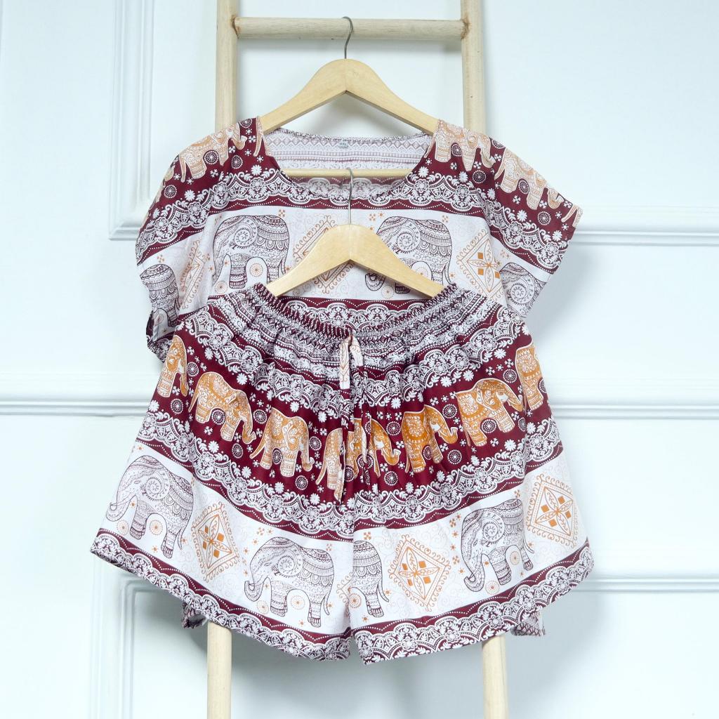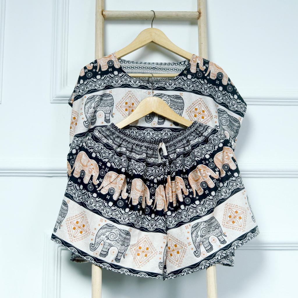 SETELAN BAJU TIDUR PENDEK MOTIF GAJAH BALI RAYON