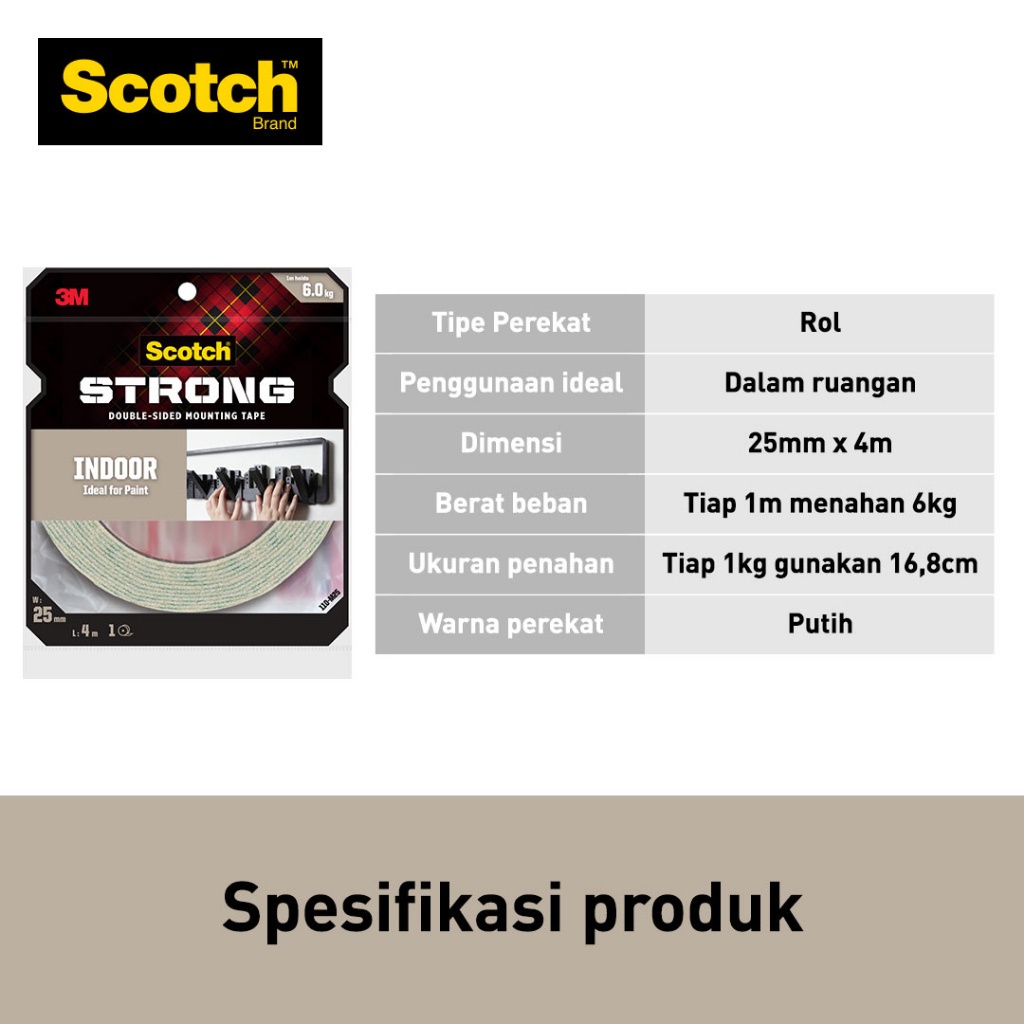 3M™ Scotch® Double-Sided Mouting Tape Indoor, Perekat kuat untuk penggunaan indoor, 1 pc, 25mm x 4m, Untuk pengunaan dalam ran