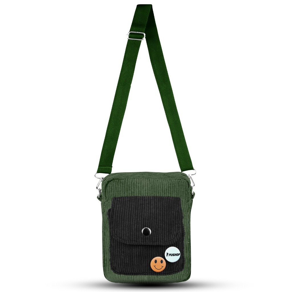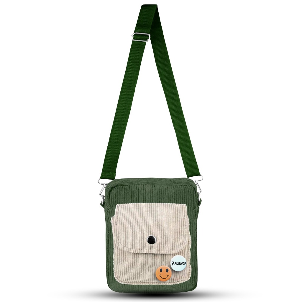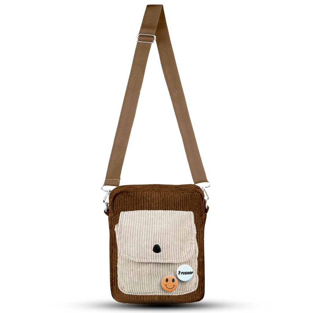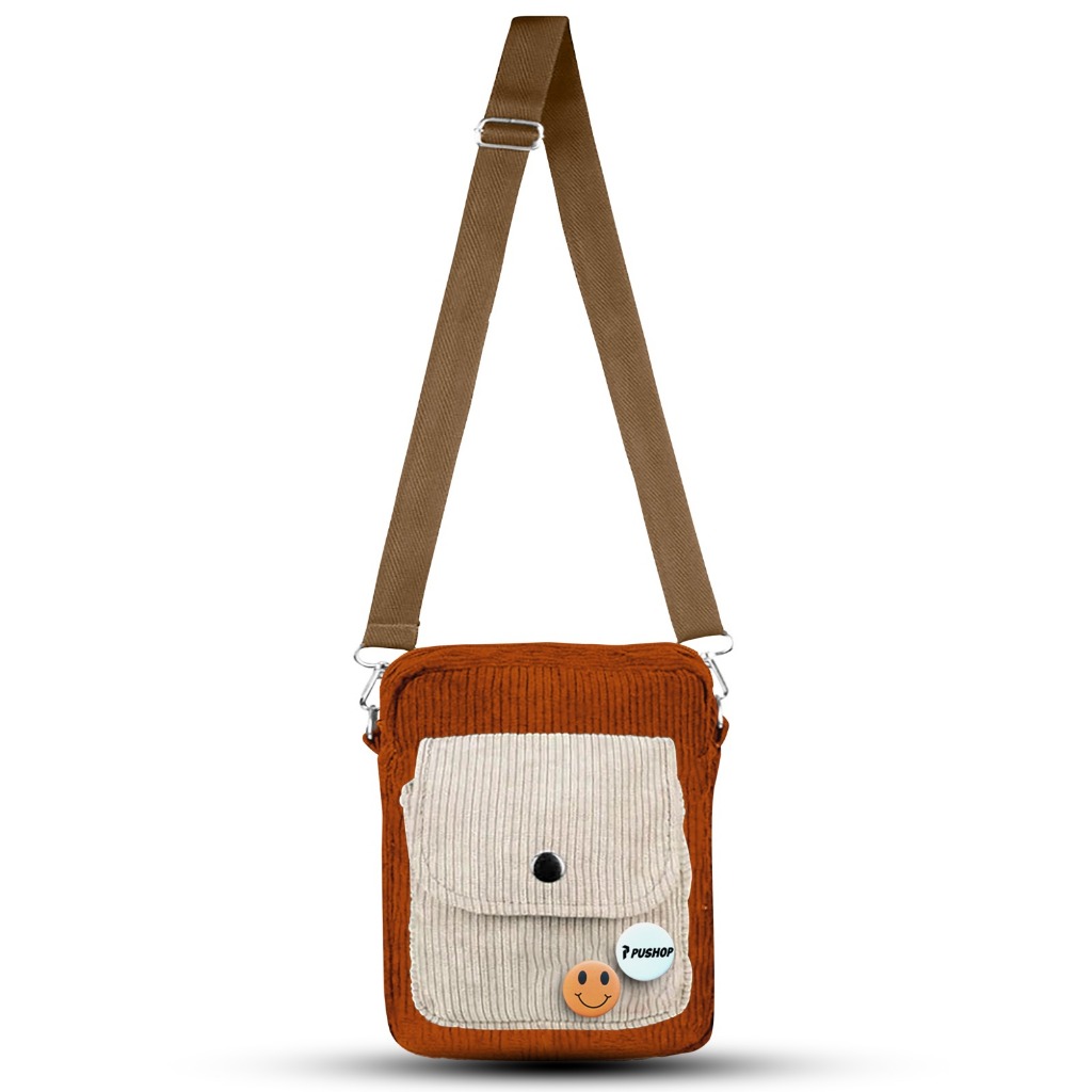 Tas Selempang Corduroy Pushop Slinbag Pria Wanita Cassa Mini Slingbag Corduroy Unisex Free 2 Pin Bros