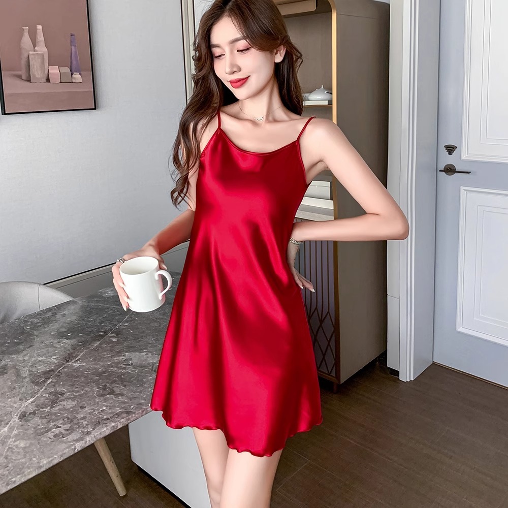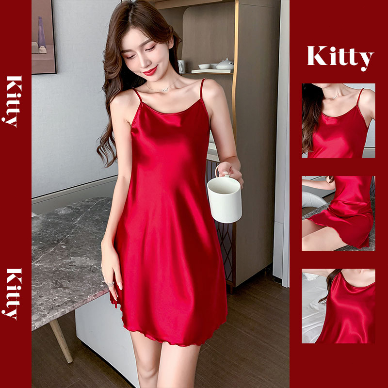 FLASH SALE Kitty Baju Tidur Tanpa Lengan Piyama Rok Lingerie Gaun Tidur Satin Premium