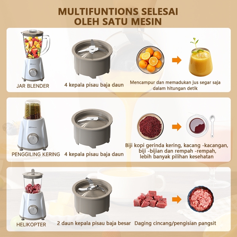 MAIMEITE Blender 3 in 1 Serbaguna Penghalus Makanan 1.4L - Mixer, Juicer, Penghancur Es, Kecepatan Tinggi, Anti Bocor