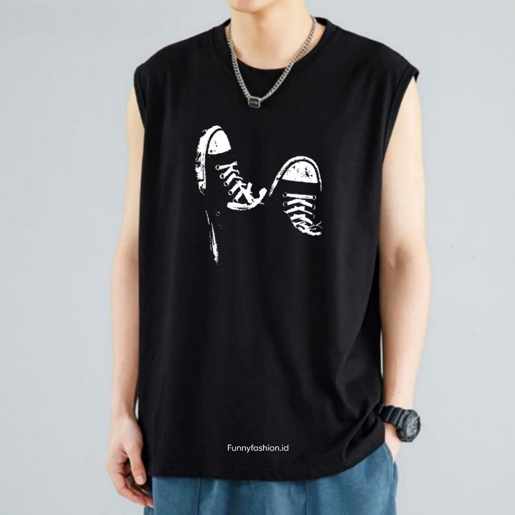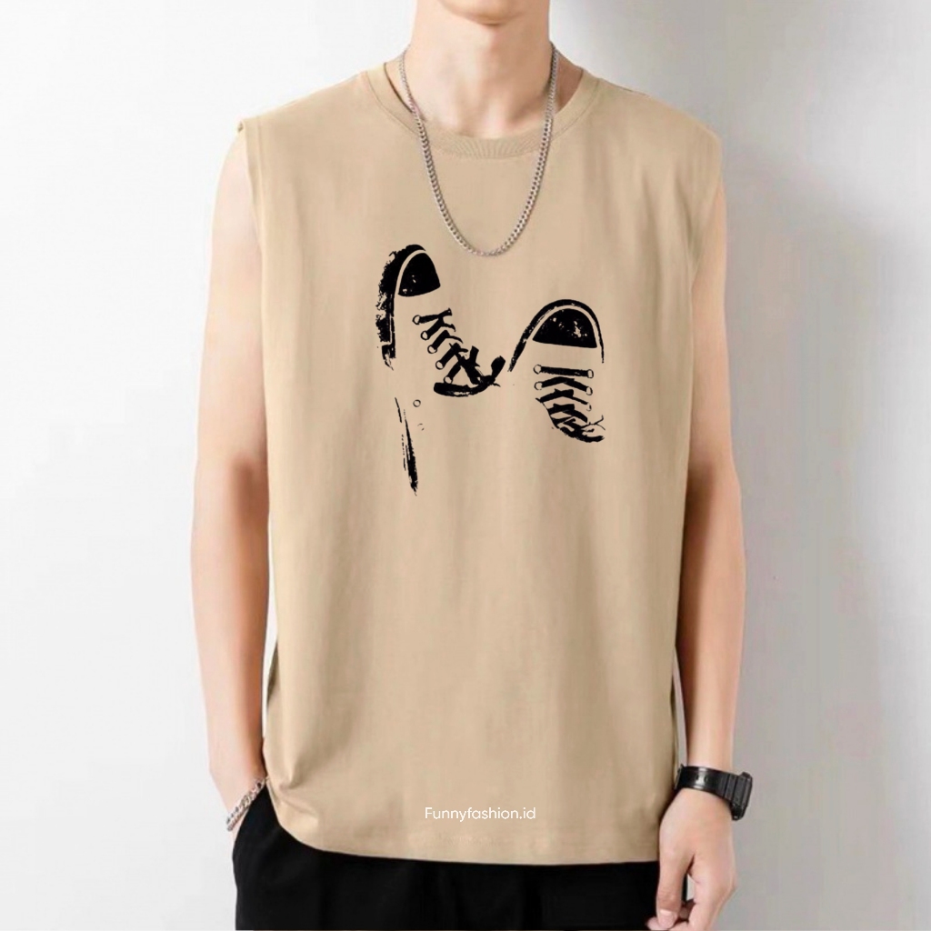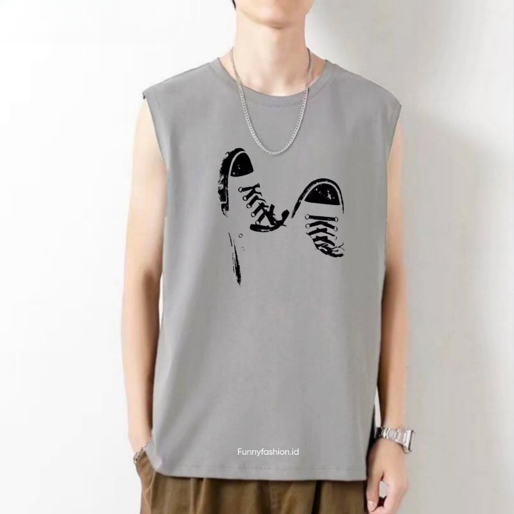 Singlet Pria Shoes Dewasa Terbaru – Kaos Tanpa Lengan Distro – Baju Gym Santai Kekinian