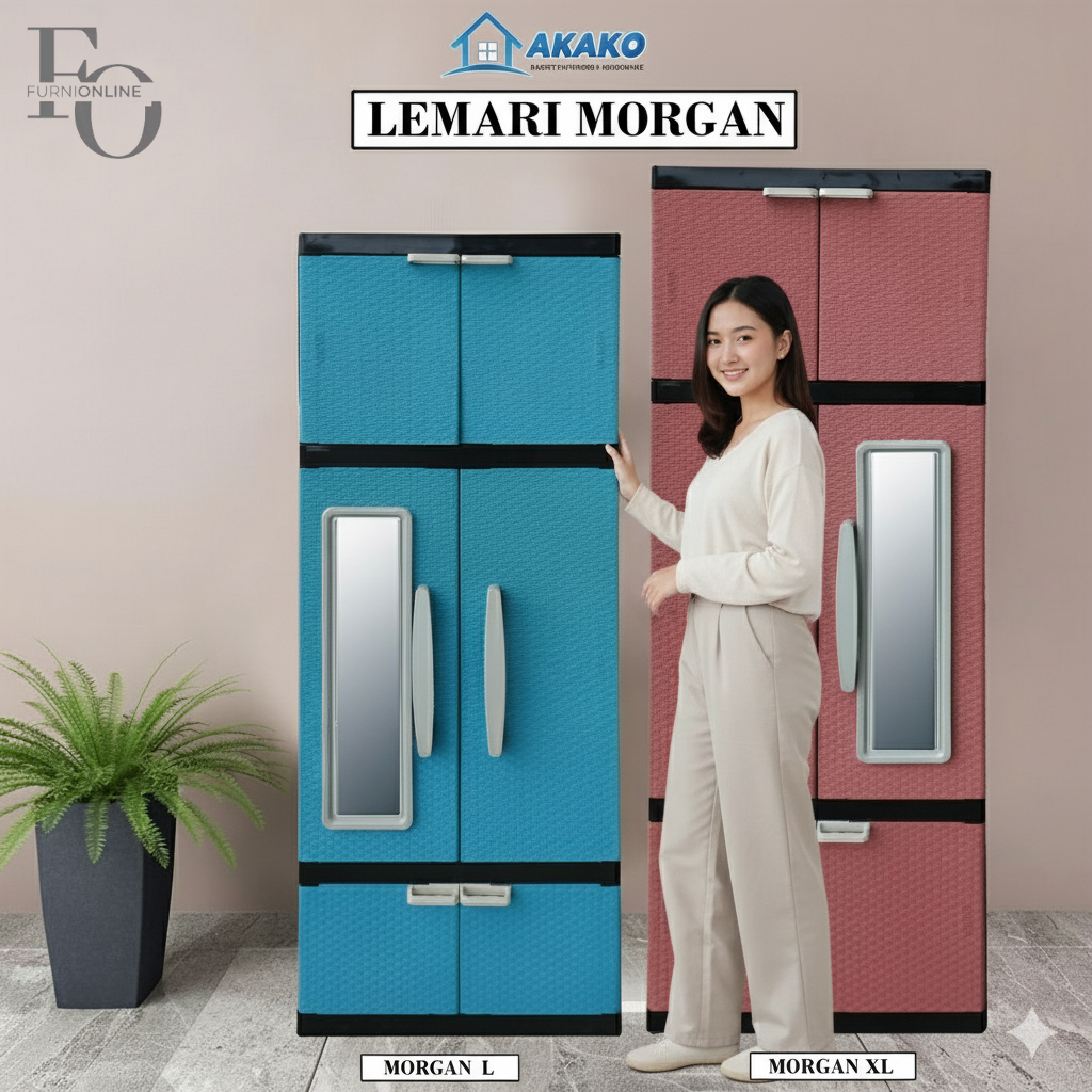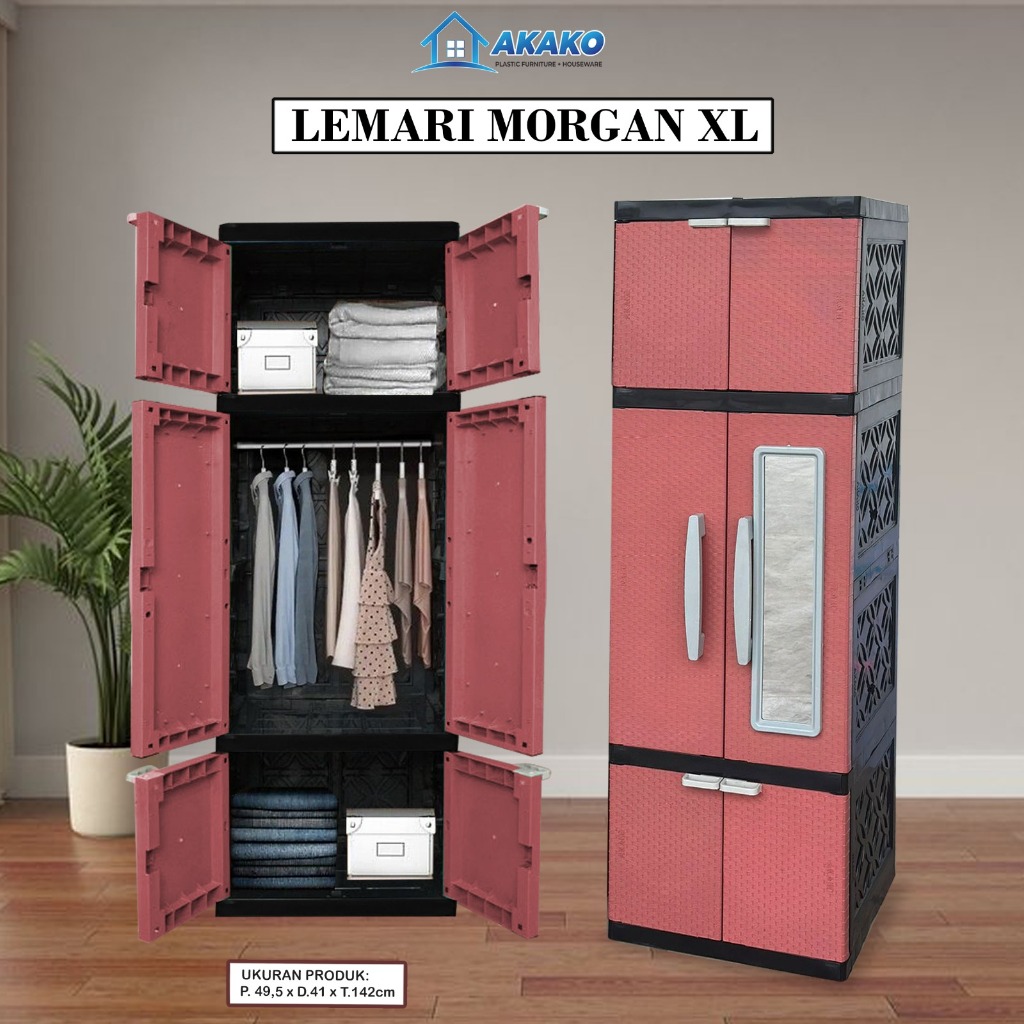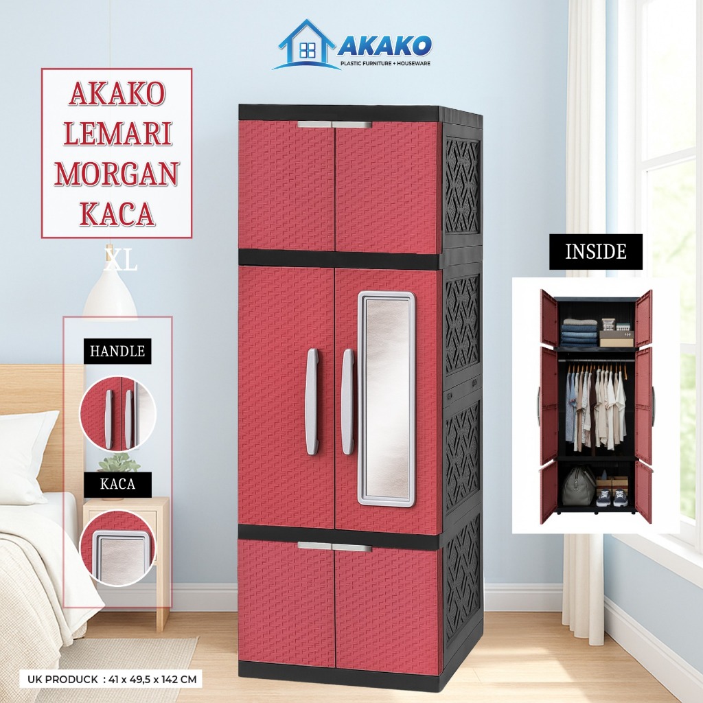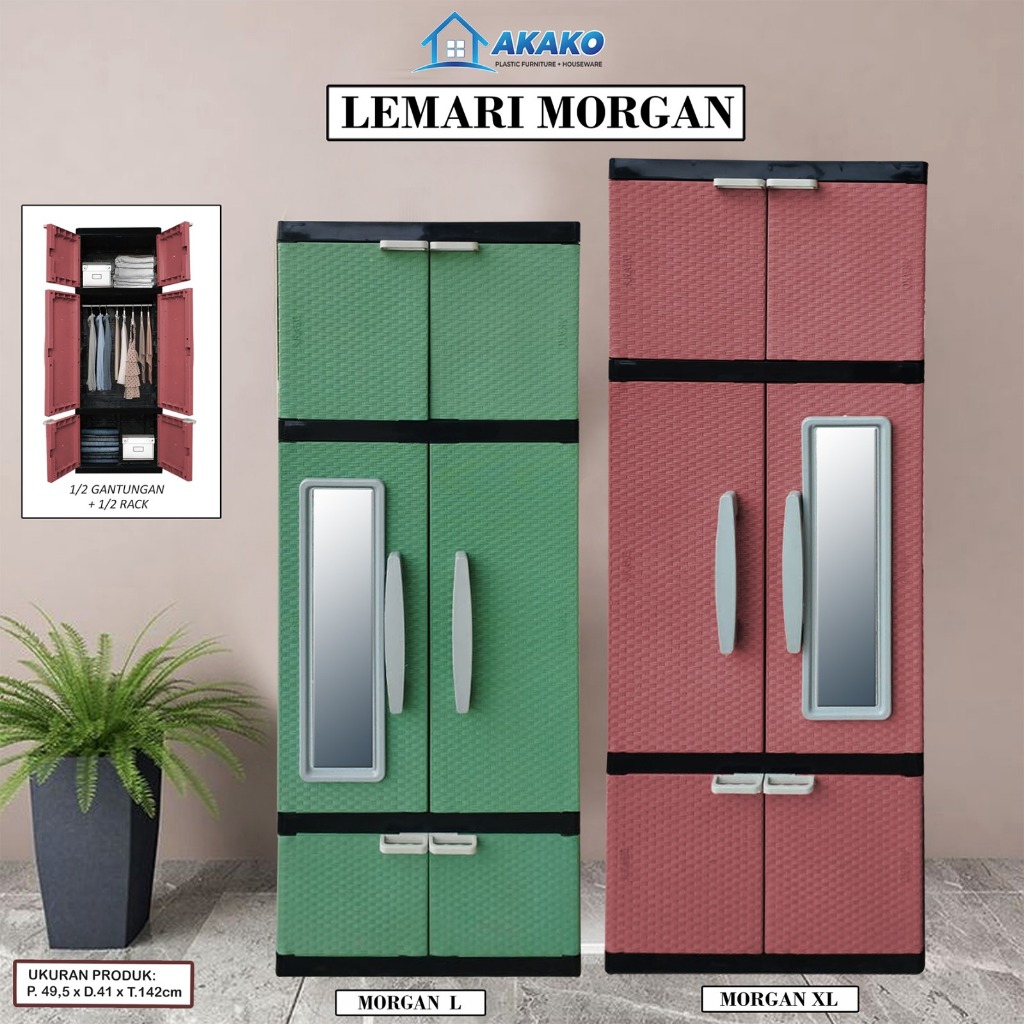 AKAKO - Lemari Plastik Akako MORGAN L / XL 2 Pintu Motif Rotan Gantung + Rak + Cermin Anti Rayap