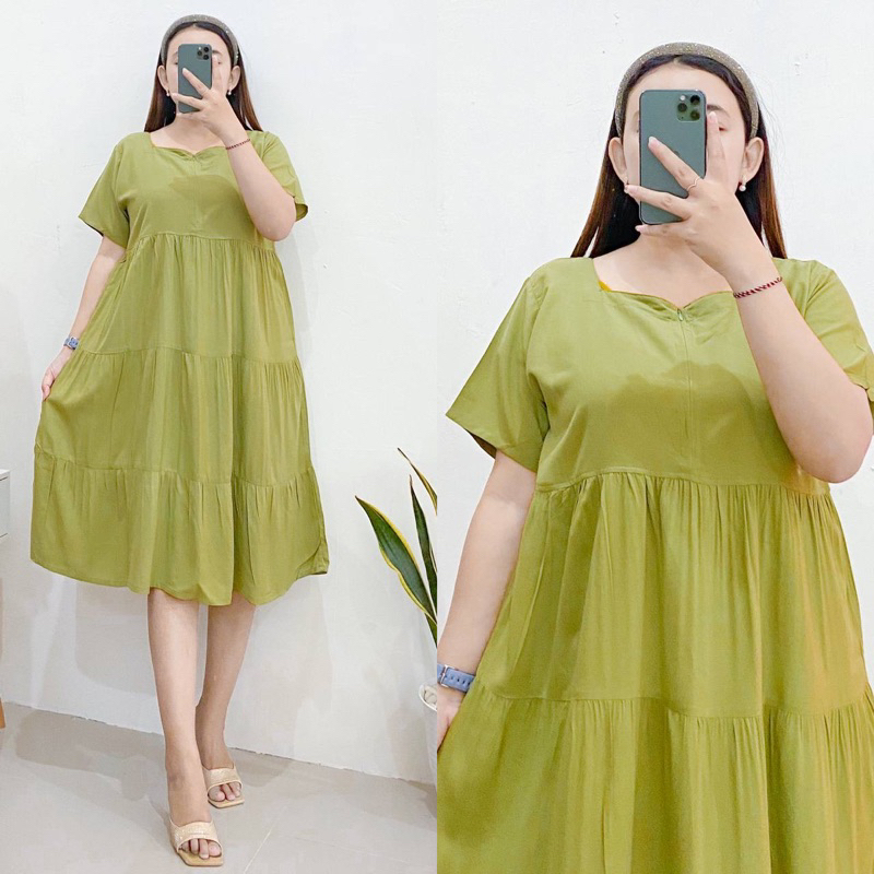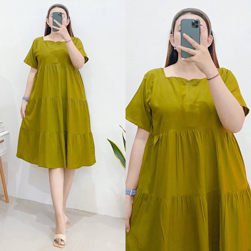 FLASH SALE Daster Ruffle Susun Rayon Polos Selutut Wanita
