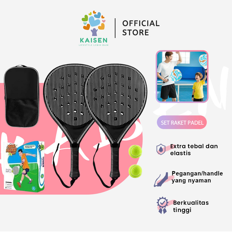 KAISEN Set Padel Racket Pemula Beginner Newbie/ 2 Raket + 2 Bola Padel + 1 Tas / Raket Padel
