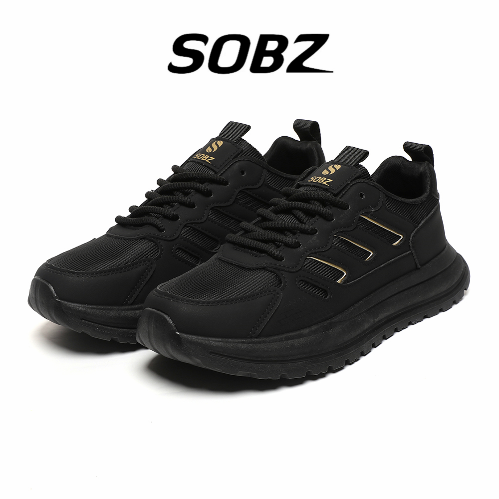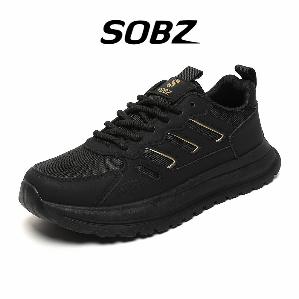 SOBZ Sepatu kasual pria hitam, menciptakan tampilan bersih dan rapi, cocok untuk bersantai olahraga