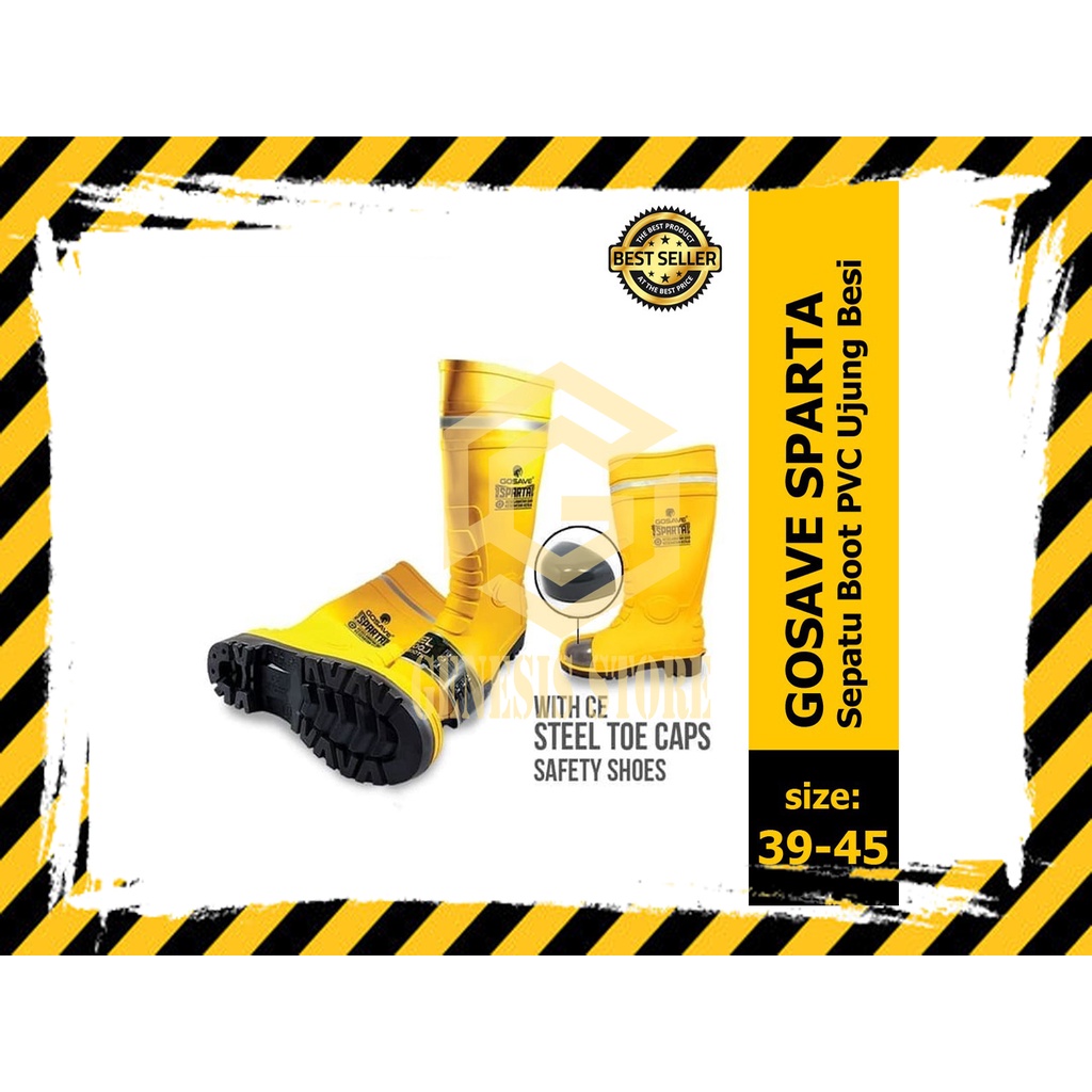 SEPATU BOOTS KARET SAFETY UJUNG BESI SEPATU KERJA ANTI SLIP GOSAVE SPARTA KUALITAS TERJAMIN