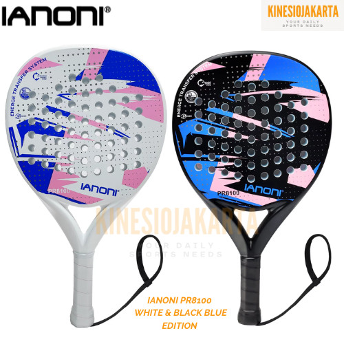IANONI PR8100 Raket Padel Full Carbon – White & Blue Pink Edition 3D Spin Surface