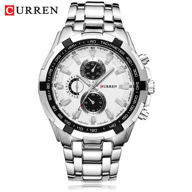Jam Tangan Pria Curren 8023 Jam Analog Stainless Steel Chronograph Tidak Aktif 46Mm Currenos