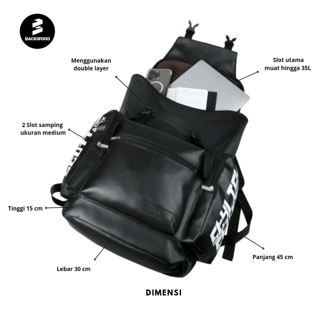BACKWOOD tas ransel MORGAN backpack tas pria kulit sintetis premium tebal tas laptop tas cowok tas kulit