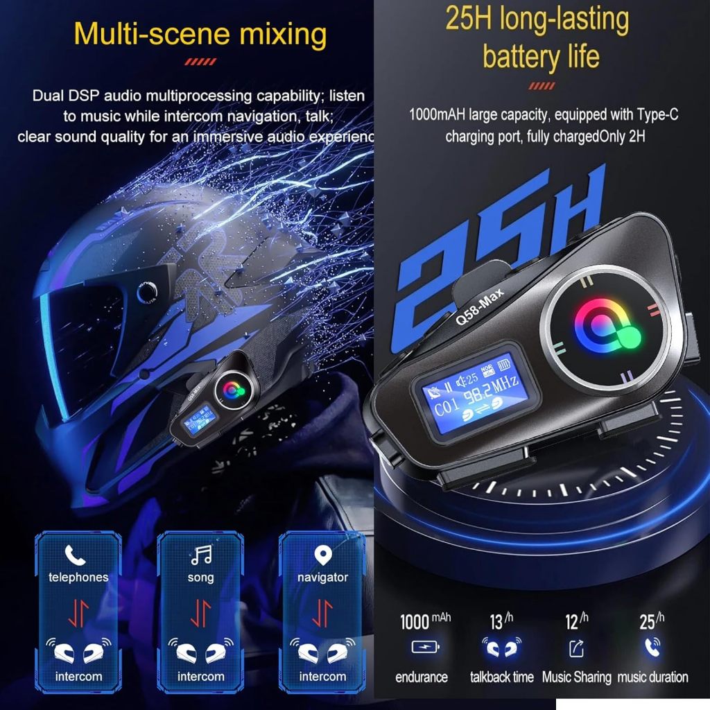 Intercom Helm Bluetooth 5.3 Fm Radio Headset 2 Riders Bahasa Indonesia 1000Mah Headset Helm Sepeda Motor Dengan Komunika