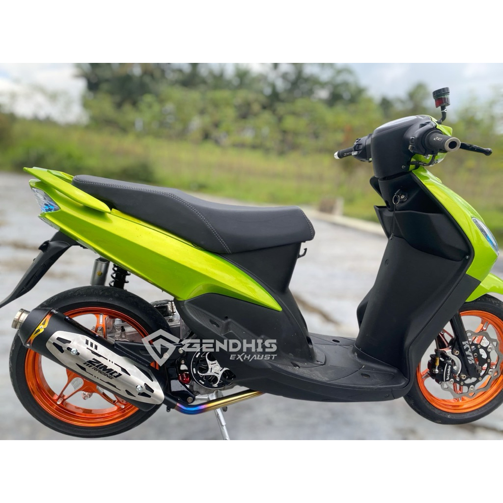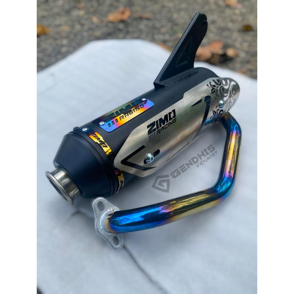 Knalpot Zimo Racing Leher Biru Suara Bas Adem Untuk Pemakaian All Matic