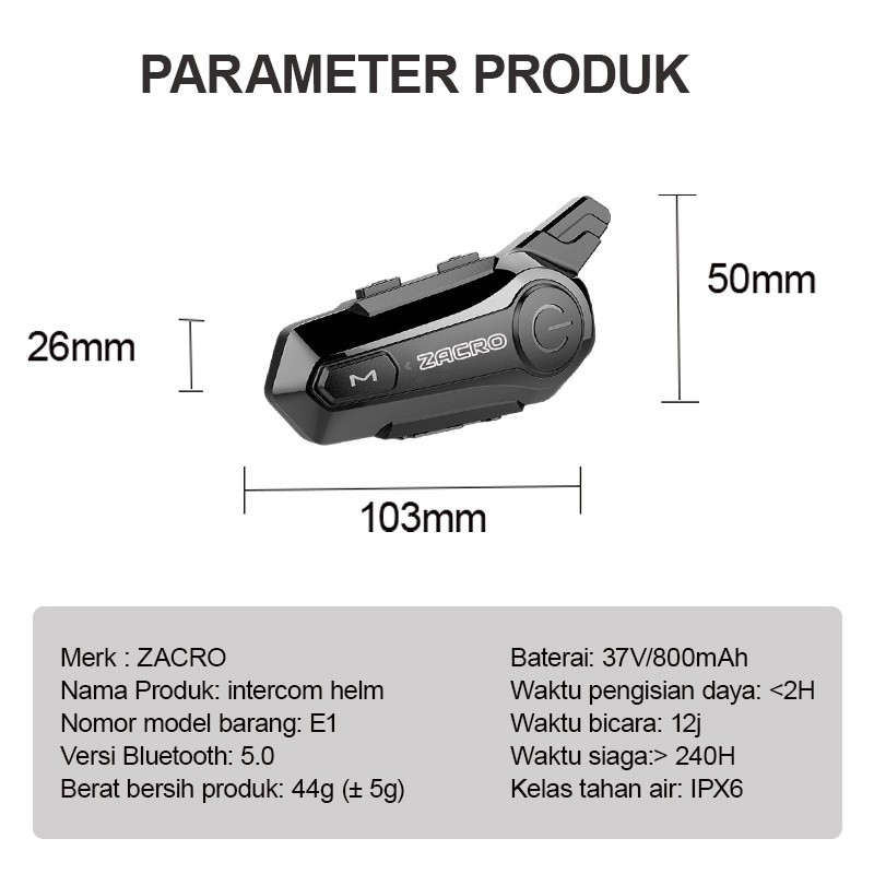 2Pcs E1 Intercom Helm Bluetooth 5.0 Fm Radio Intercom Dua Arah Dan Peringkat Tahan Air Ipx6