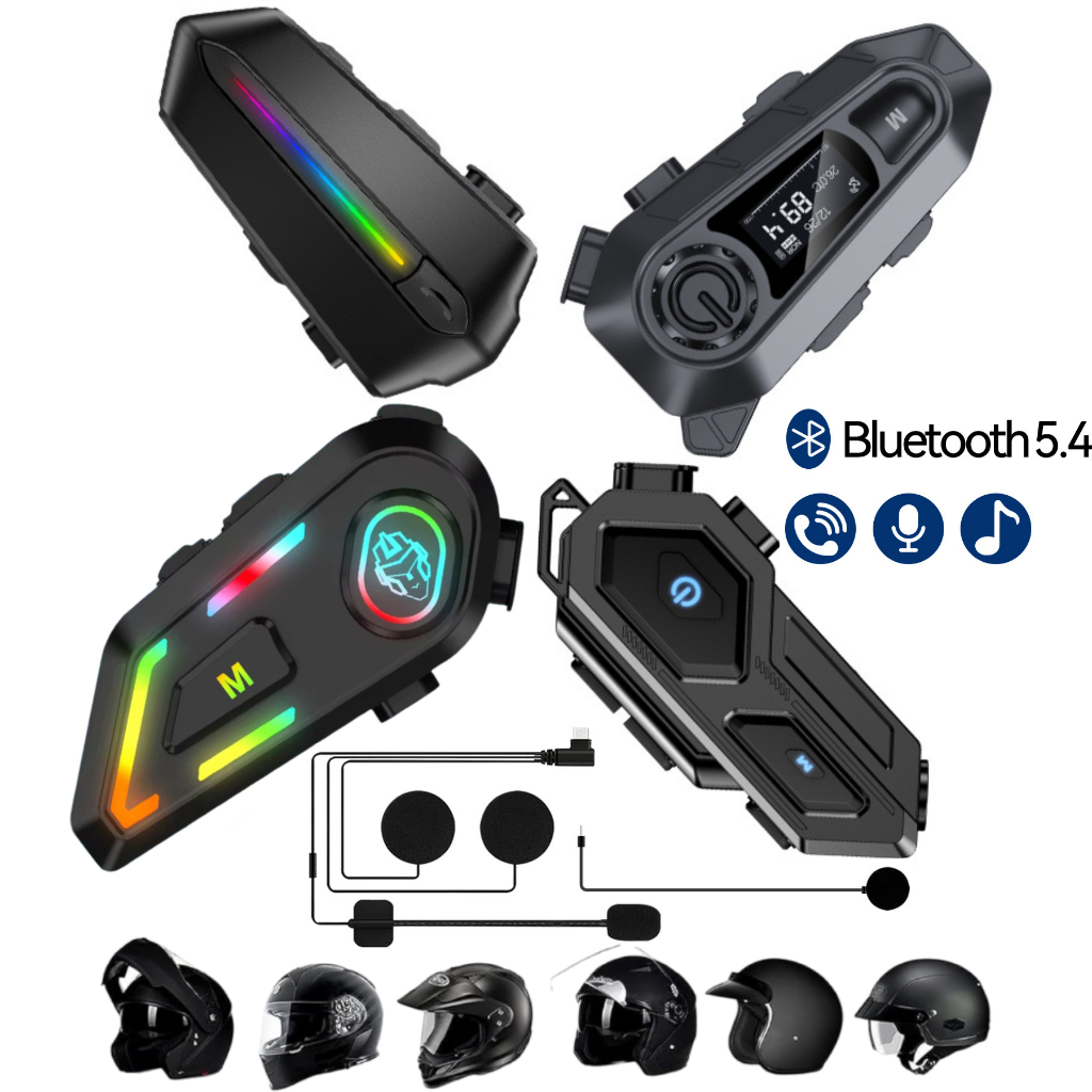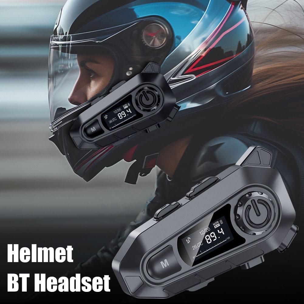 Intercom Headset Bluetooth V5.4 Helm Sepeda Motor Dengan Layar Led Cerdas, Radio Fm Interkom Hansfre
