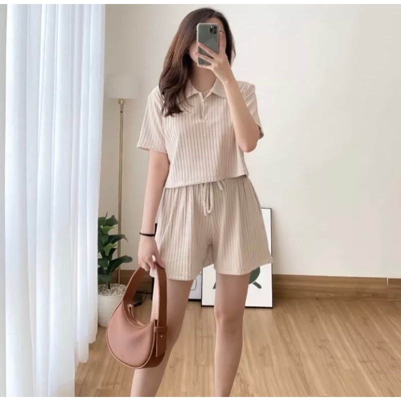Sabrina - Siera Setelan Crop Oneset Hornet Wanita Premium Termurah Knit One Set Terbaru Ootd Viral