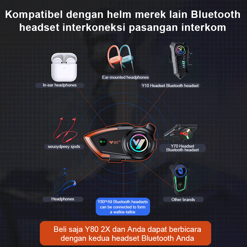Stok Lokal Mofox Y80 2X Intercom Bluetooth Helm Waterproof Sepeda Motor Bluetooth 5.3 800M Intercom Dua Arah Dan Peringk
