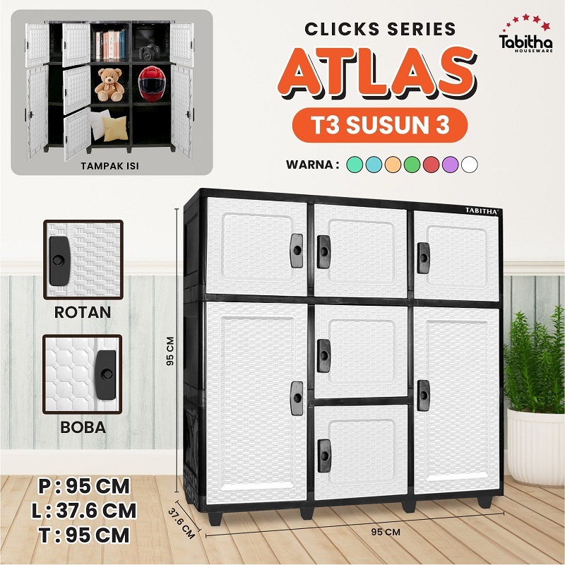 TABITHA Lemari Plastik Serbaguna Motif Kayu Rak TV Tempat Penyimpanan TV