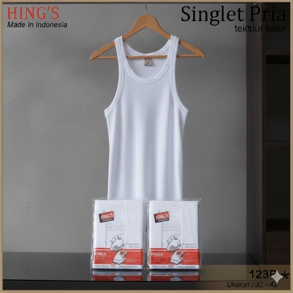( 3pcs ) Singlet Hing's | Pakaian Dalam Pria Salur | Kaos Dalam Pria | Singlet Pria - NUSANTARA