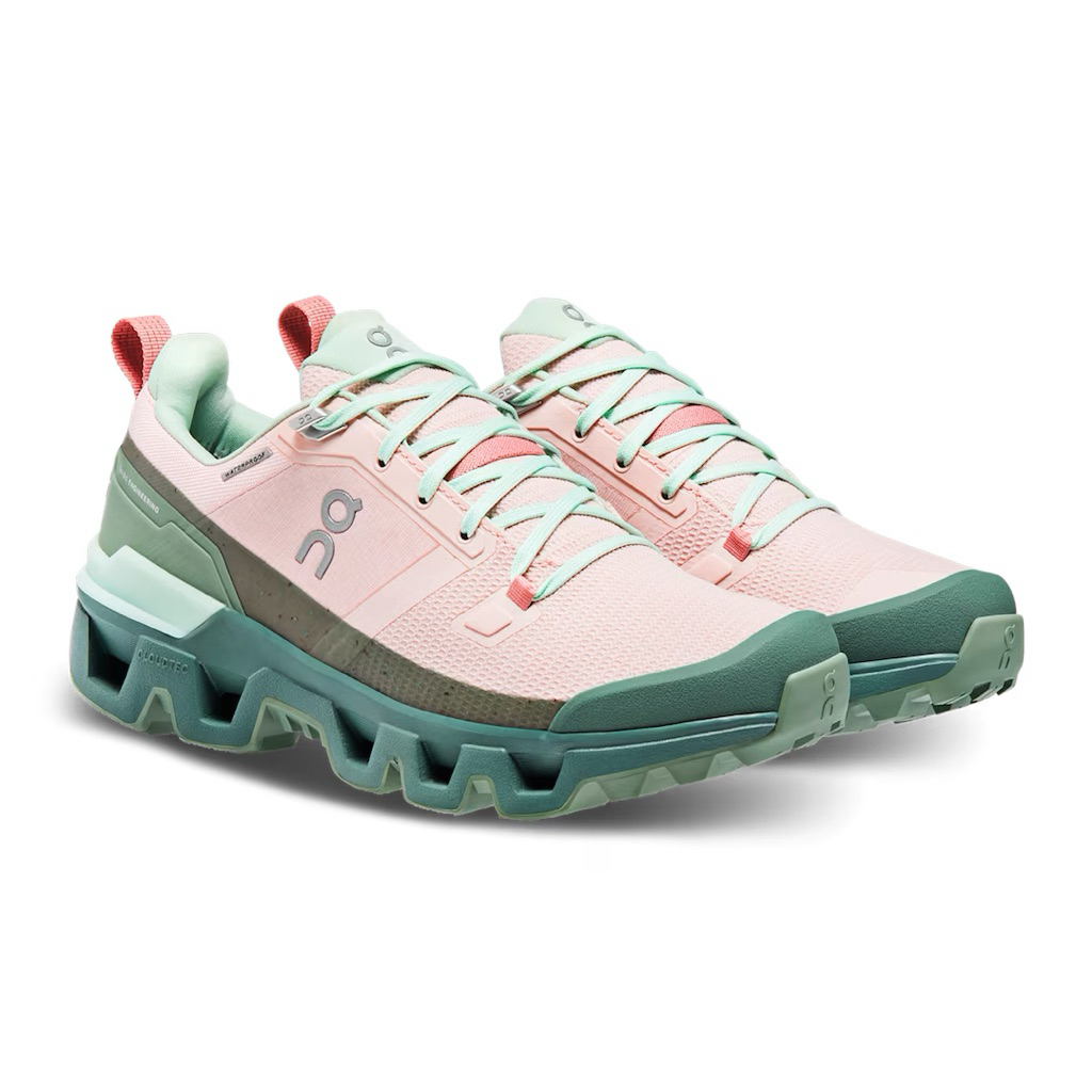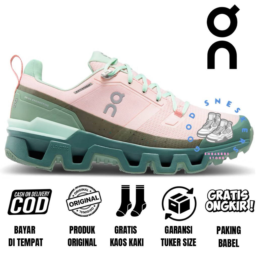 Sepatu Running Hiking Trail Run On Cloudwander Waterproof Pink Green Original