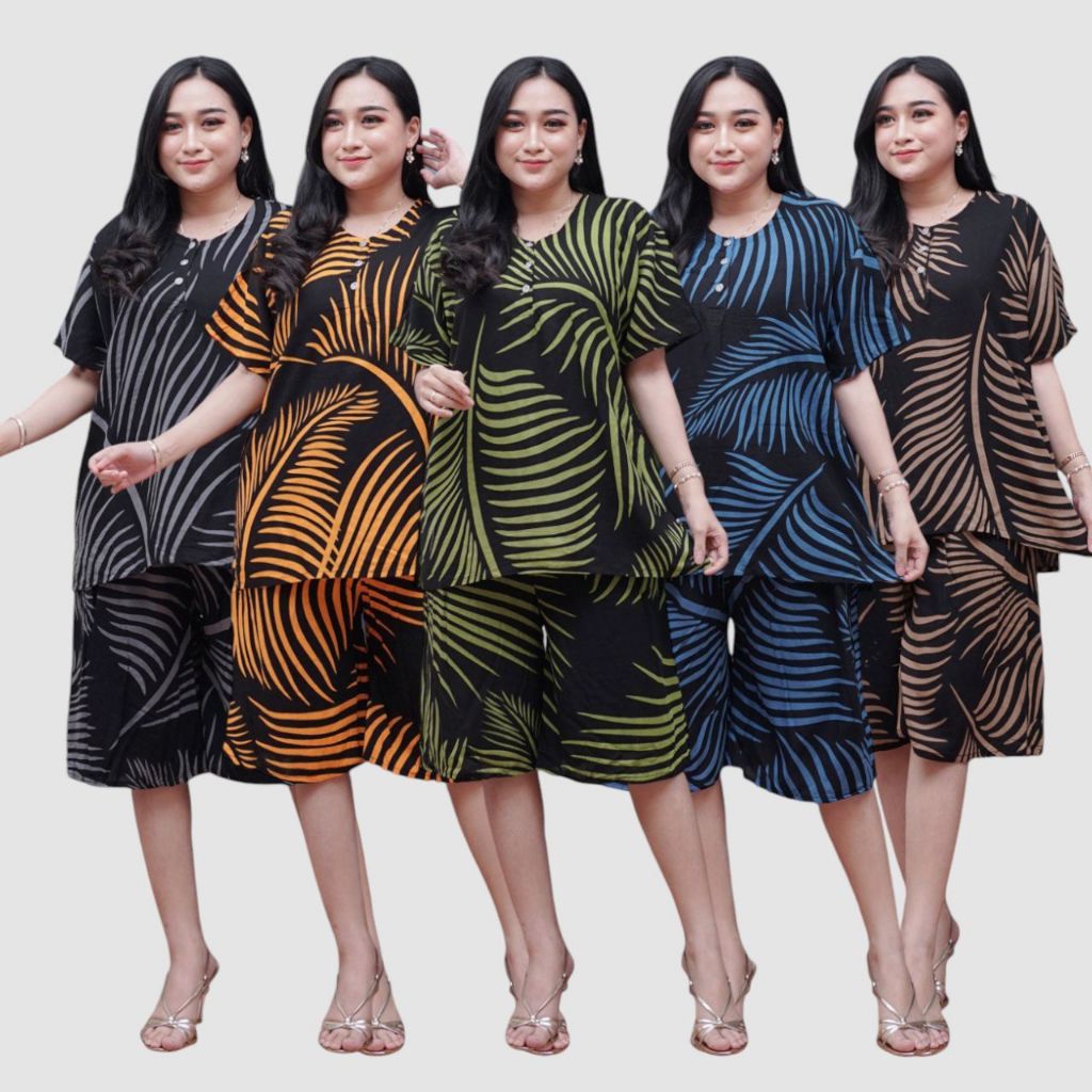 FLASH SALE Setelan Rayon Kulot Jumbo LD 115 Baju tidur santai Lengan Pendek Kancing Depan